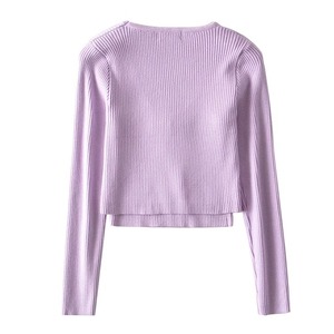 Vネックデザインが顔周りをすっきりと見せ、タイトなシルエットが女性らしさを引き立てます。