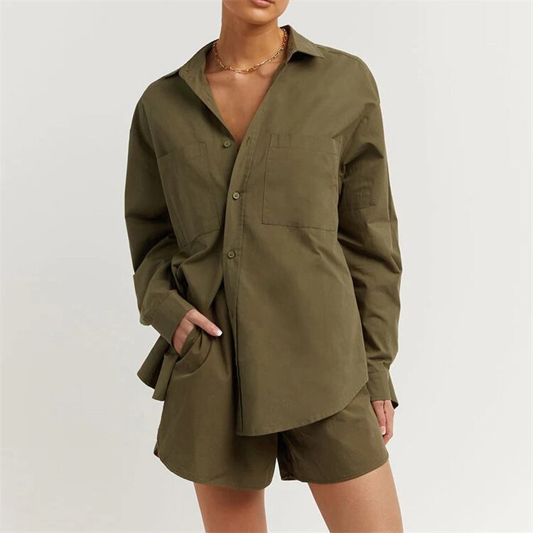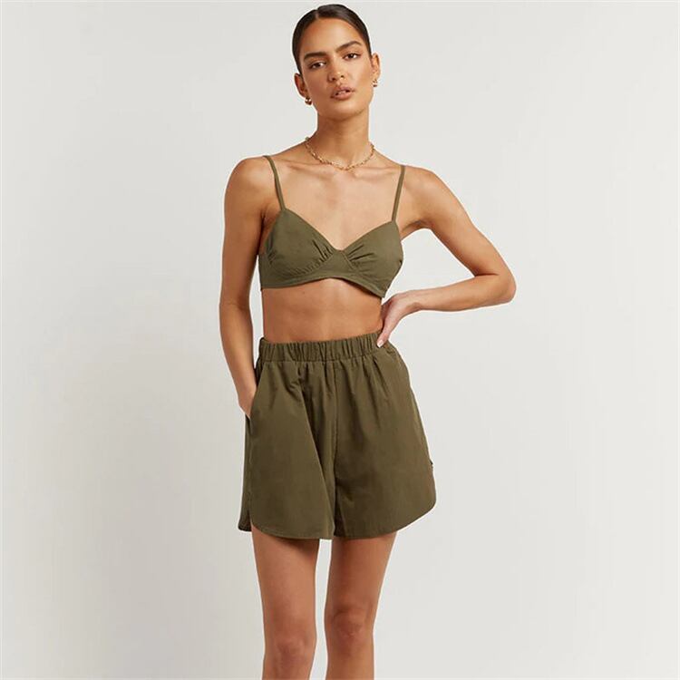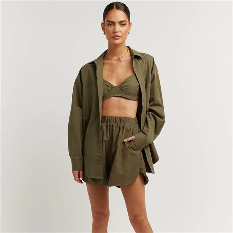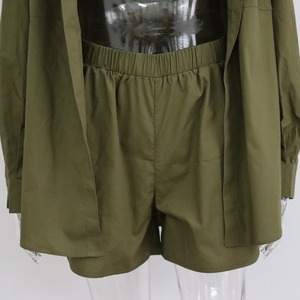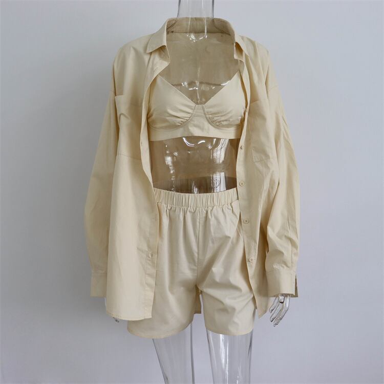 インナー、ショートパンツ、シャツのセットアップ3点セット。