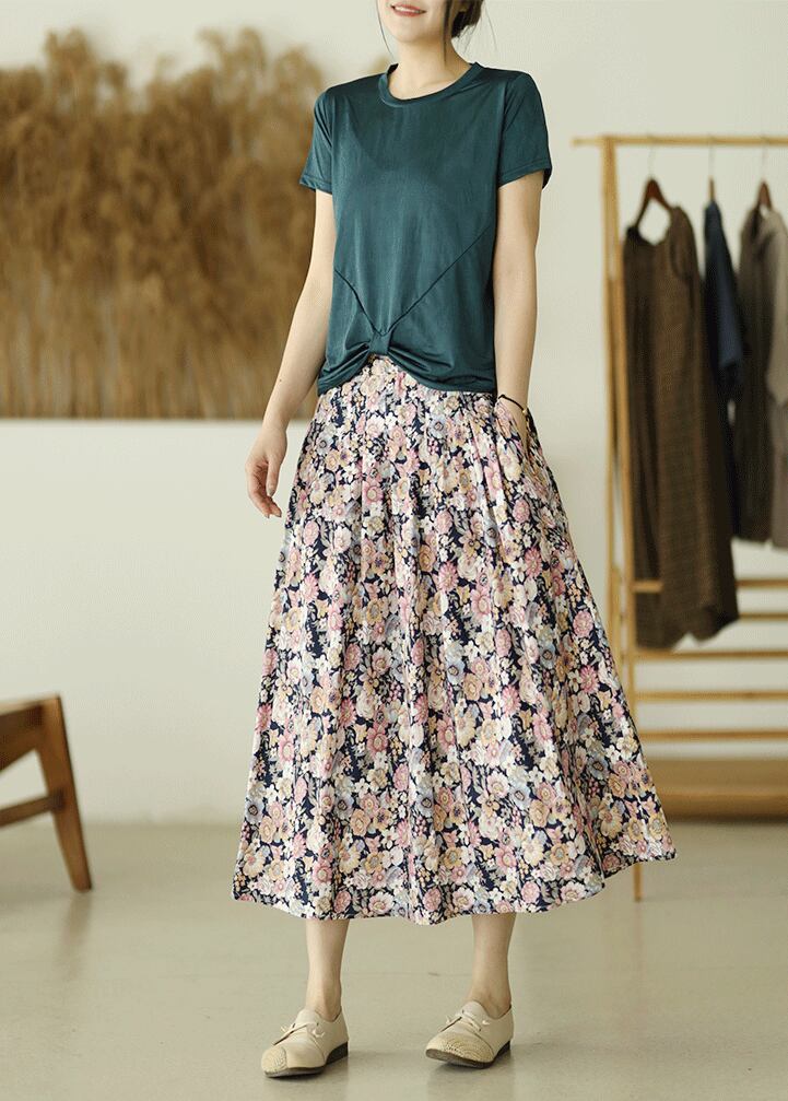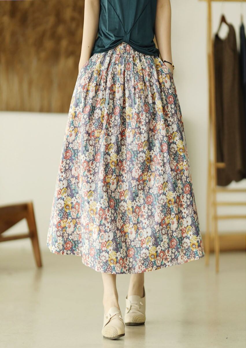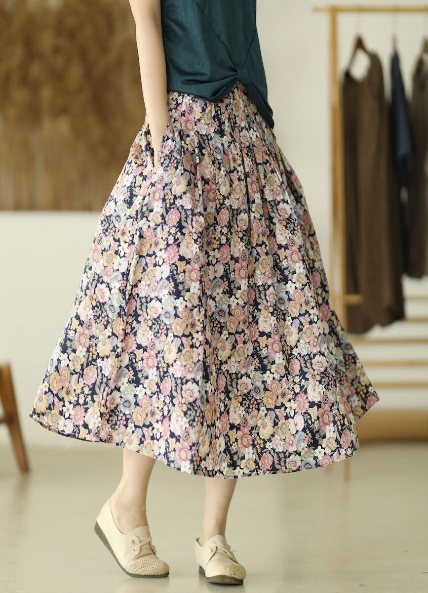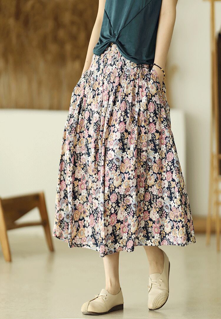 花柄総柄がレトロな雰囲気のミモレ丈Aラインスカート!