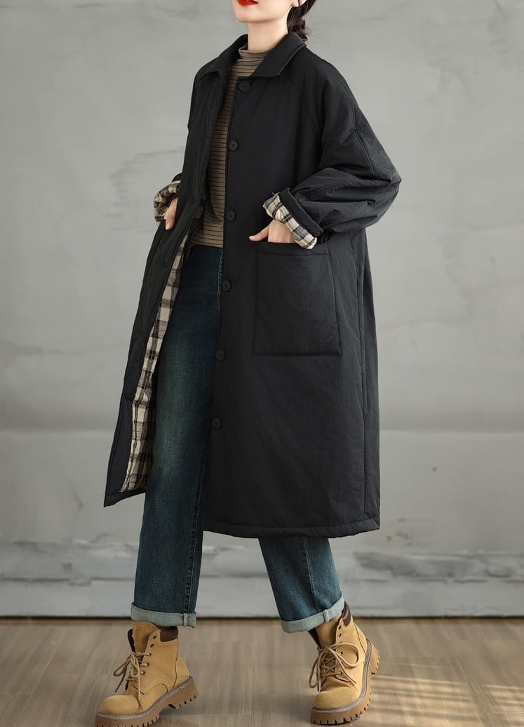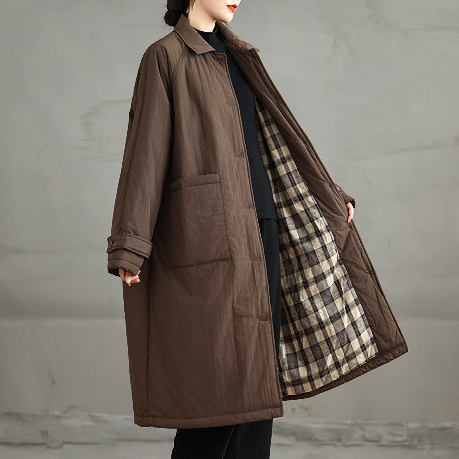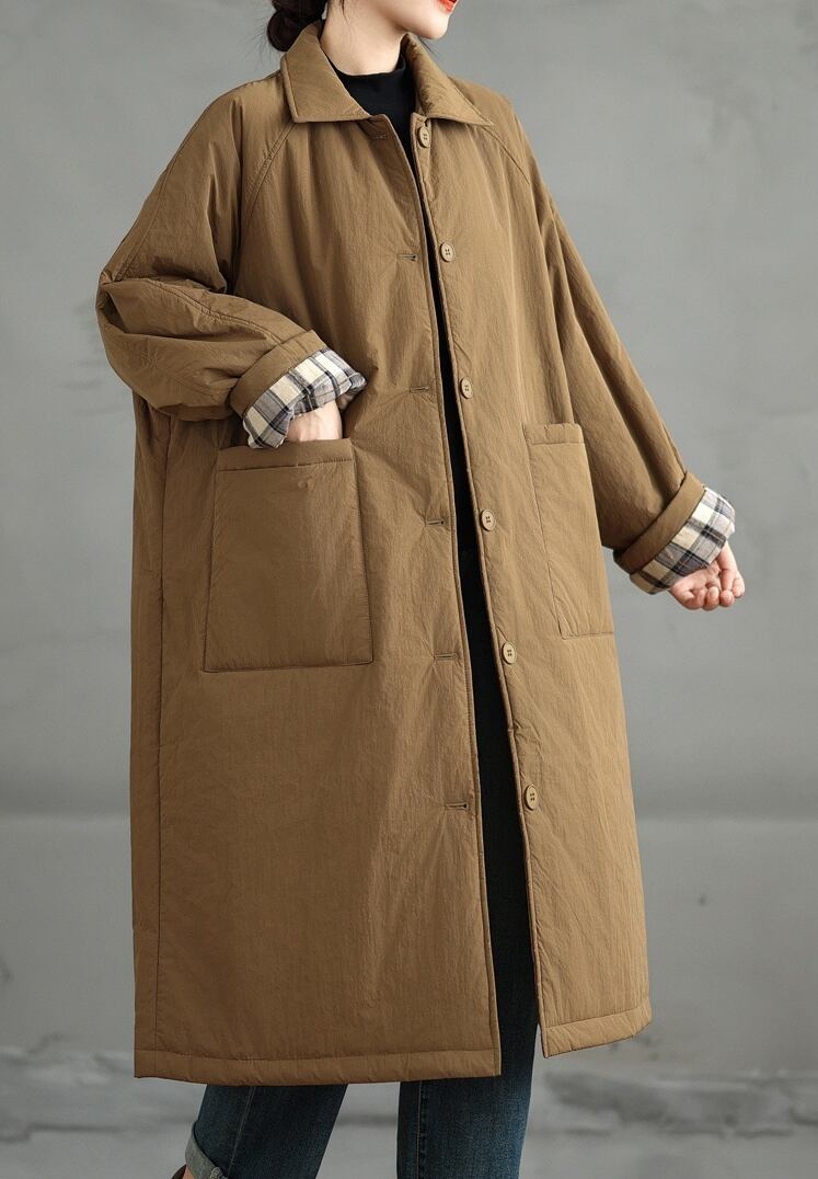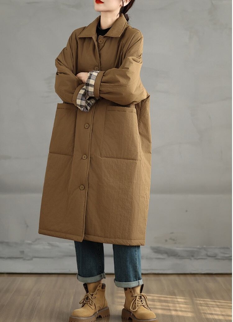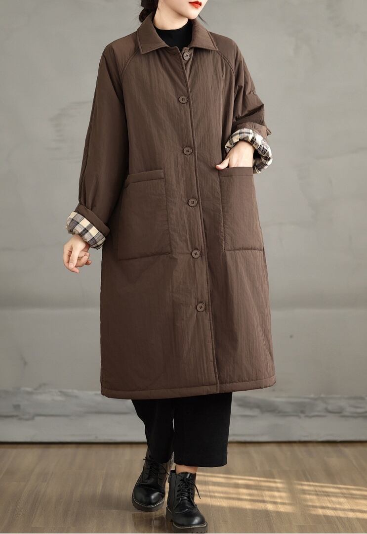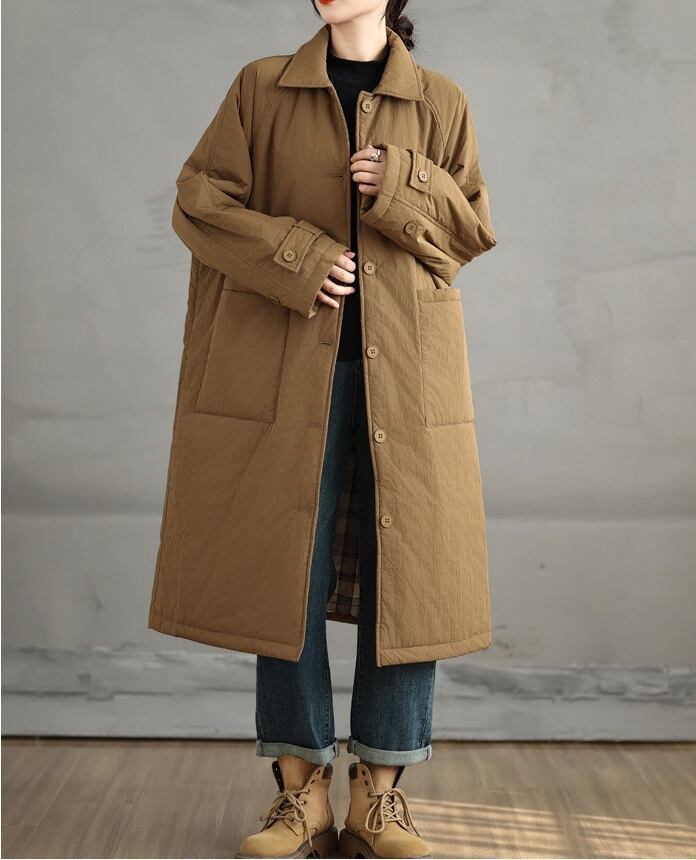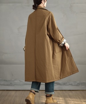 シンプルでありながらもおしゃれな、ステンカラーのロング中綿コート。