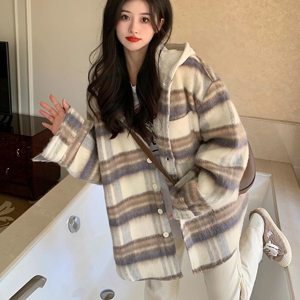 存在感あるオーバーシルエットとチェックデザインで今どきに着こなせるジャケットコート。スタイリッシュで旬な着こなしが完成する1着。サラッと着ればイマドキ感が加速するデザインなのでデイリーコーデにフル稼働間違い無しです。ふわふわのチェック生地がシーズンムードを高めてくれます。