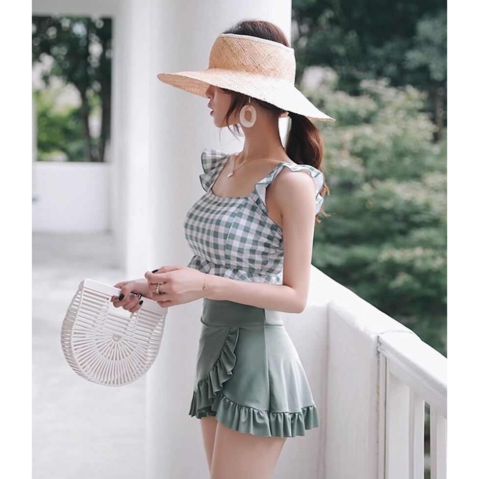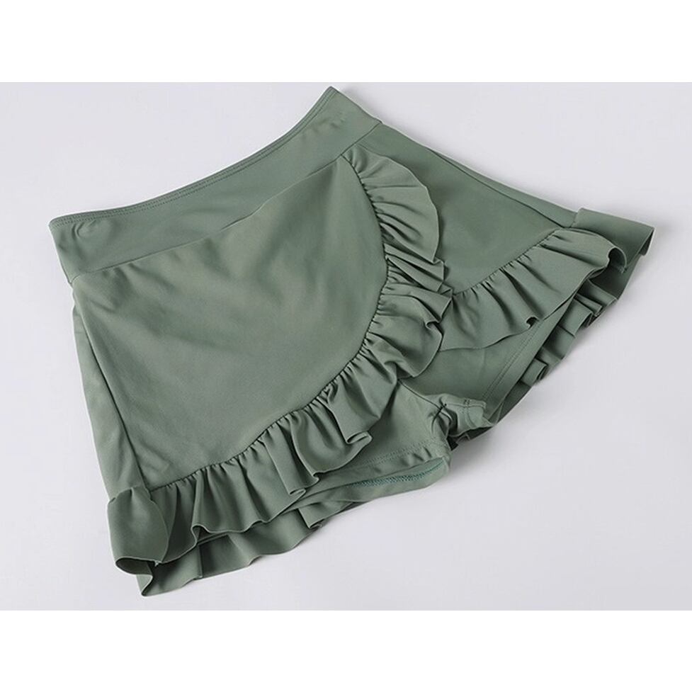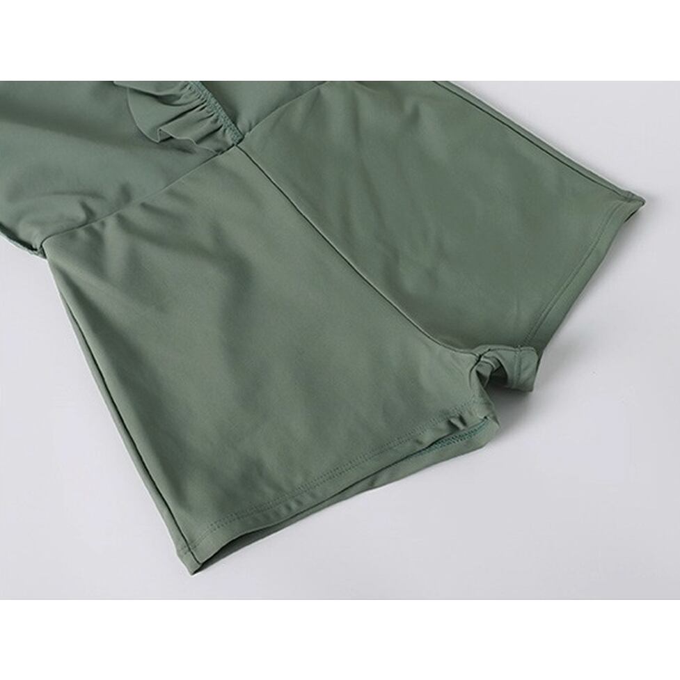 フリルとスクエアネックデザインで首回りを華奢に見せてくれるガーリーなビキニセット。さりげない露出でリゾート気分をプラス。ハイウエストショートパンツで腰回りもすっきり。アシンメトリーのラップフリルのディテールもかわいさを後押し。海やプール、フェスやBBQ、サウナやピラティスなど、あらゆるシーンで活躍します。