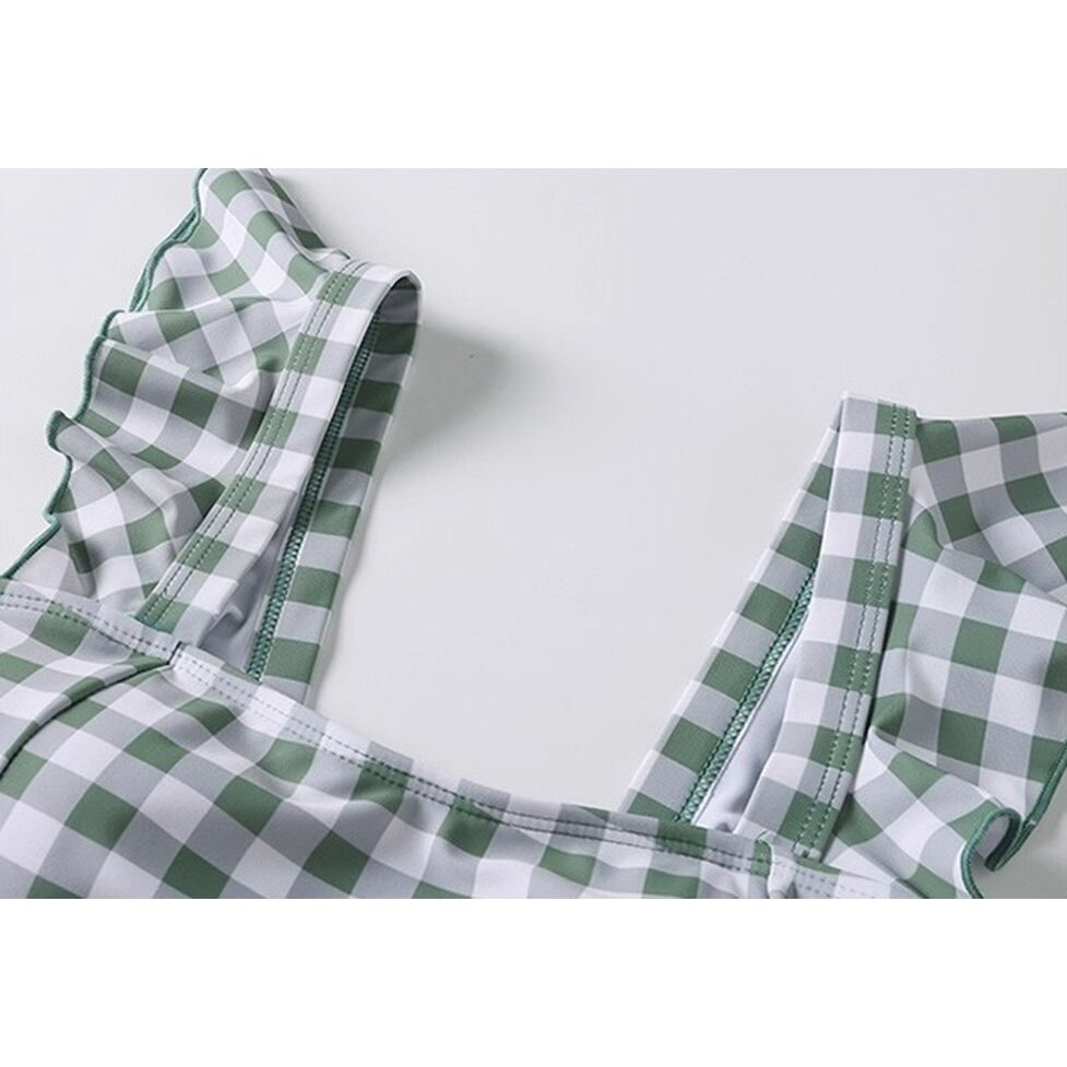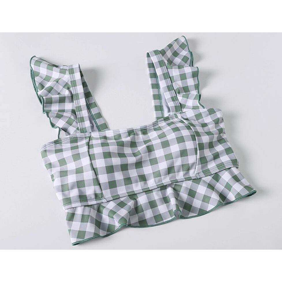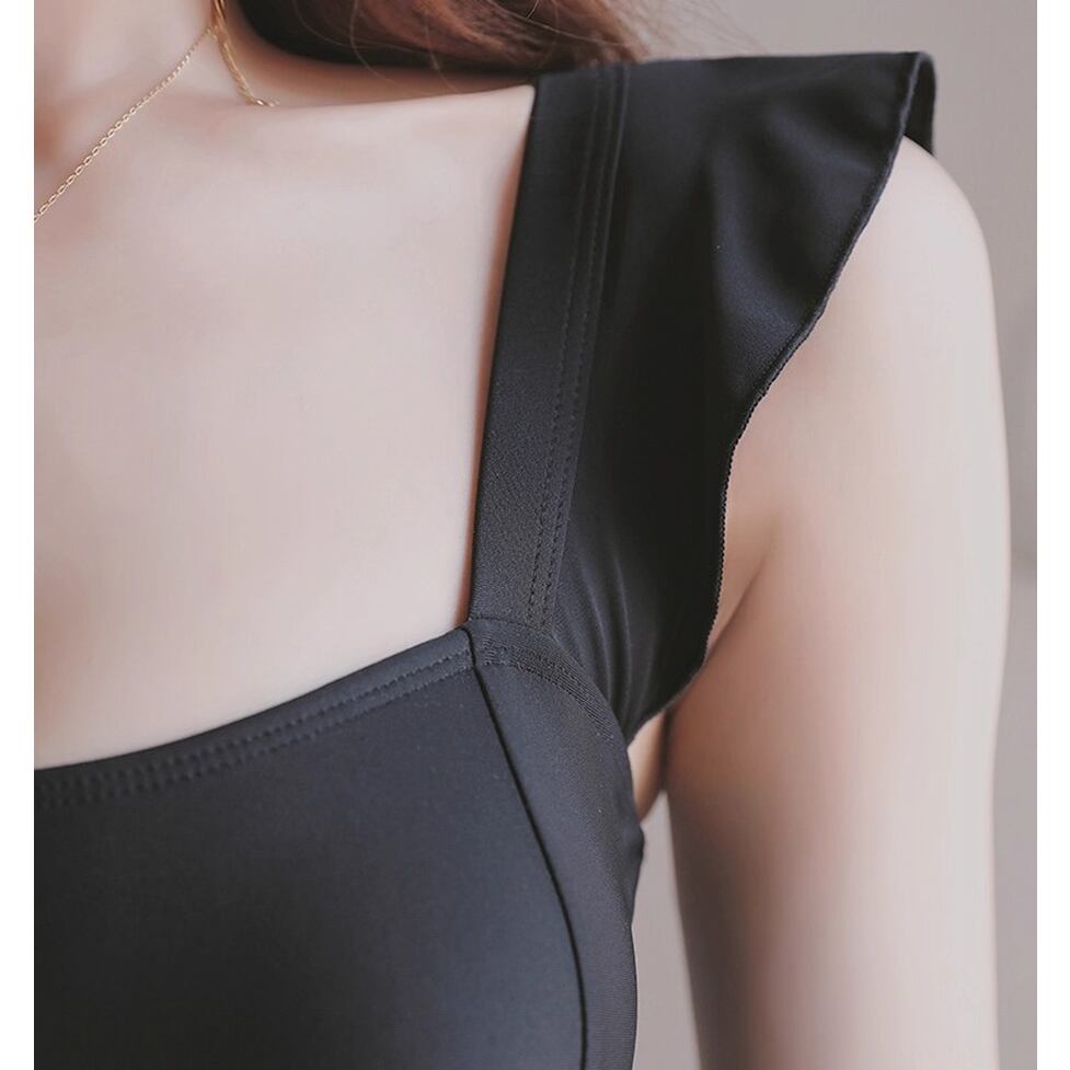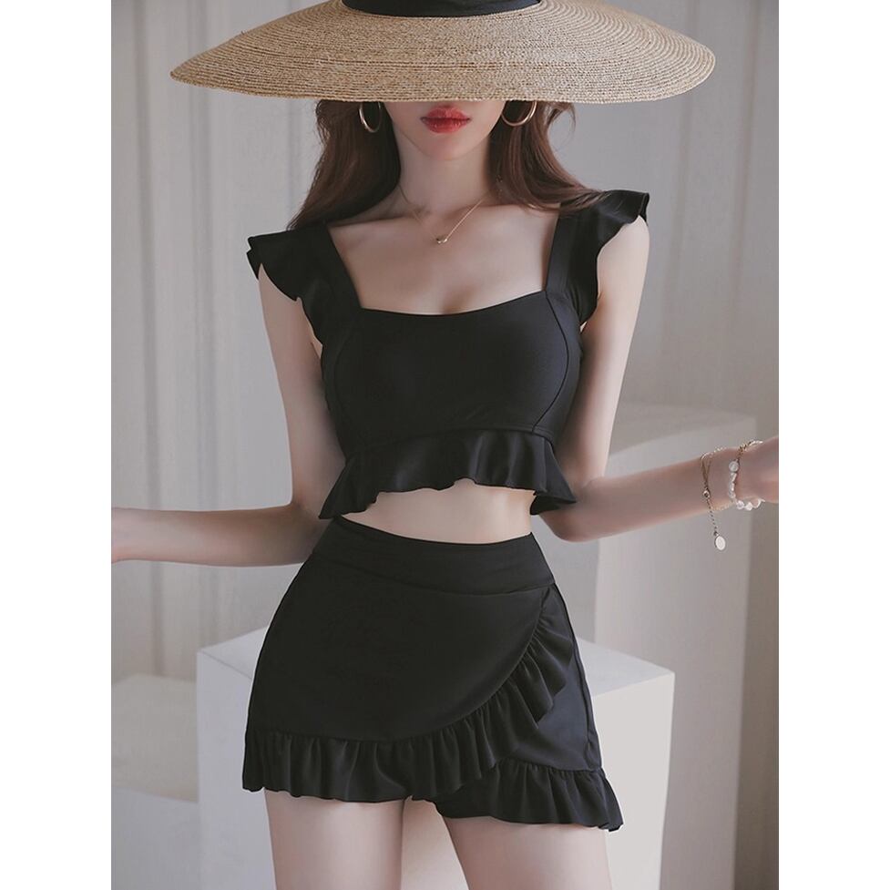 フリルとスクエアネックデザインで首回りを華奢に見せてくれるガーリーなビキニセット。さりげない露出でリゾート気分をプラス。ハイウエストショートパンツで腰回りもすっきり。アシンメトリーのラップフリルのディテールもかわいさを後押し。海やプール、フェスやBBQ、サウナやピラティスなど、あらゆるシーンで活躍します。