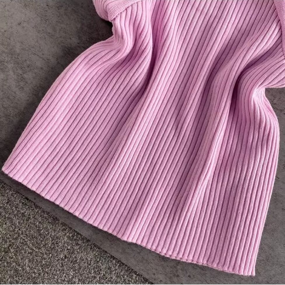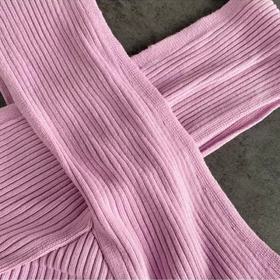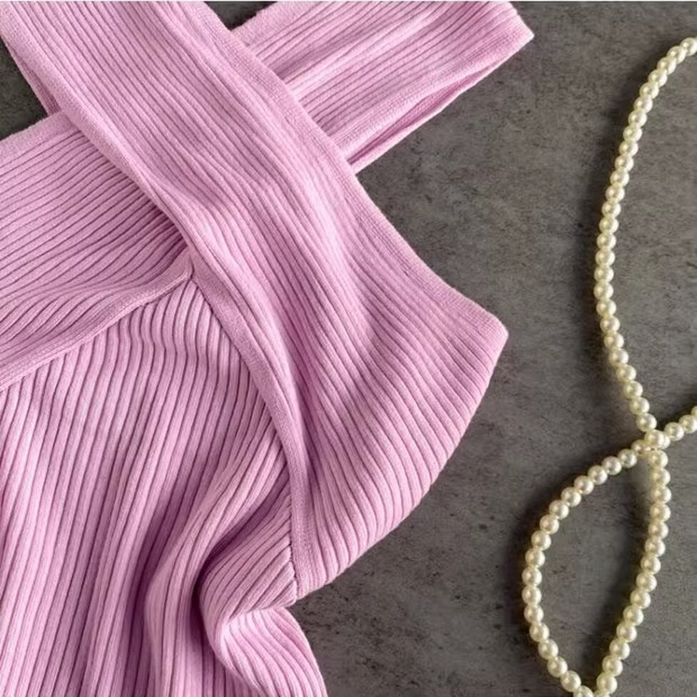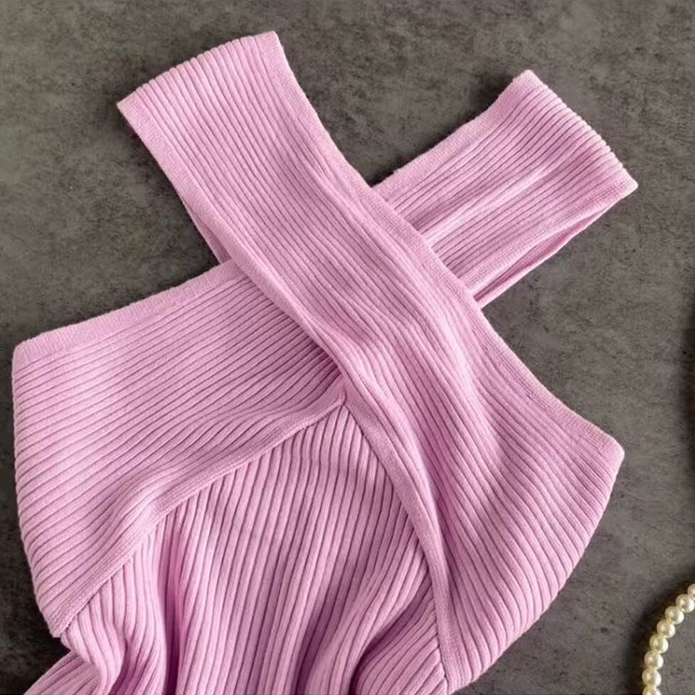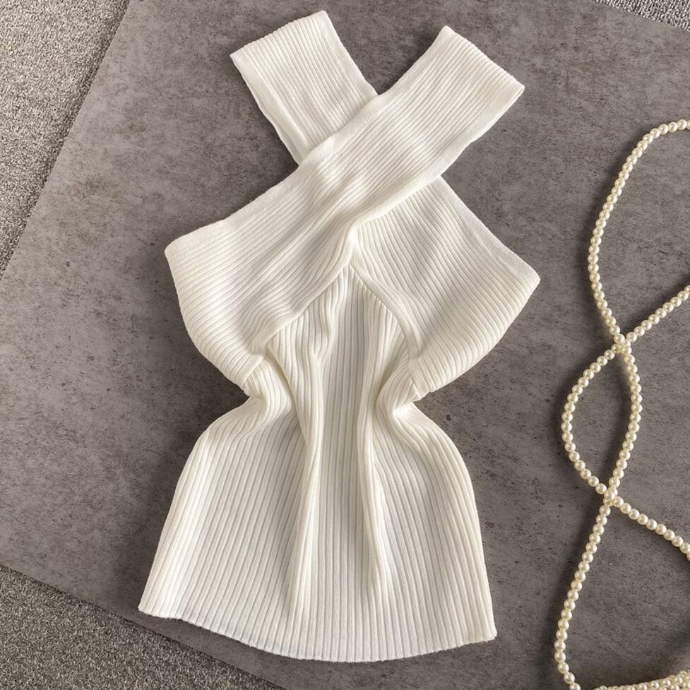 新鮮なクロスデザインが目を惹くニットベスト。着方によって印象がガラリと変わる主役級アイテム。肌見せ具合に抜け感がでてエレガントな印象に。コンパクトなサイズ感の為ボトムを選ばず着ることができます。