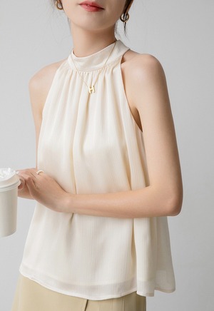 シンプルで上品なホルターネックノースリーブトップス。