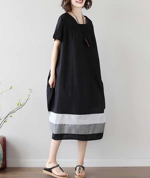 スクエアネックのデザインで、シンプルながらもおしゃれな印象を与えます。中厚手の素材感は、春から秋までの季節に最適で、普段使いにもお出かけにもぴったりです。バイカラーのボーダー配色が、大人可愛い雰囲気を演出し、なんといっても体型カバー効果も抜群!女子会やデート、休日のリラックスタイムにもおすすめです。Aラインフレアの動きやすさと、クラシカルなロマンティックなデザインが、まさに主役級の存在感を放ちます。