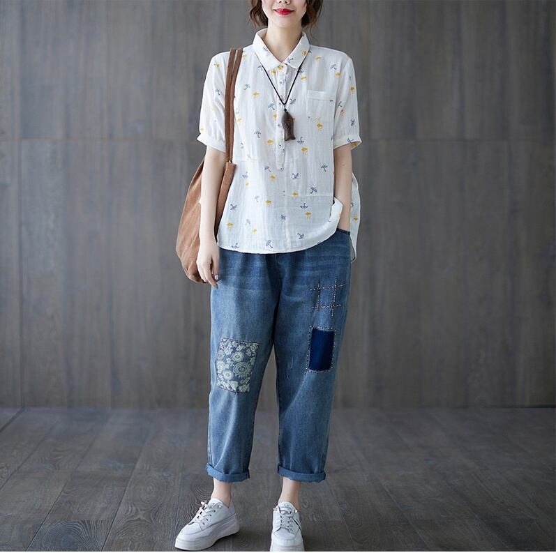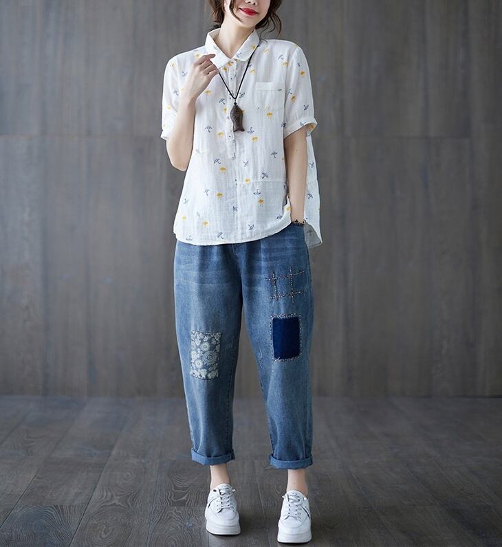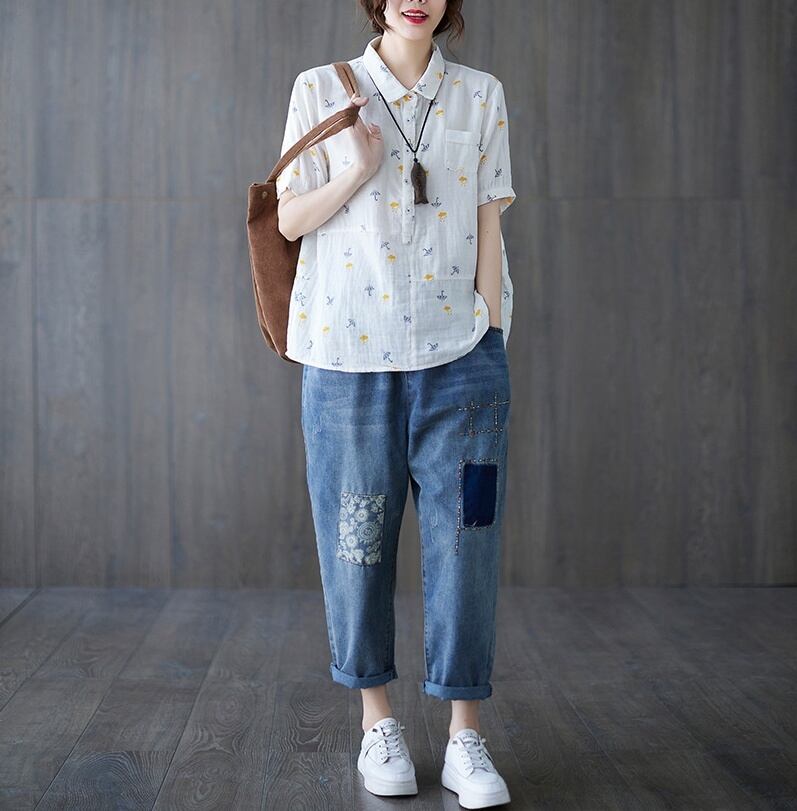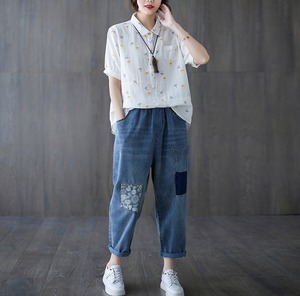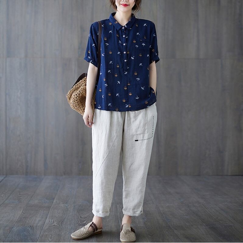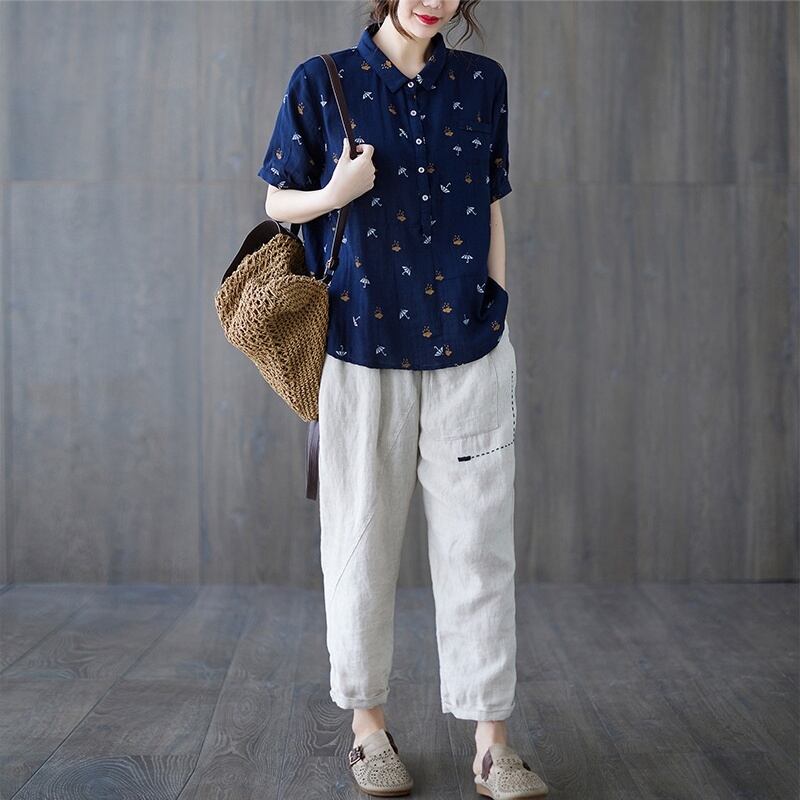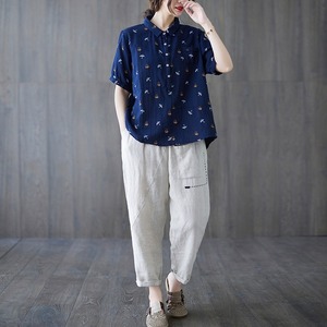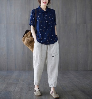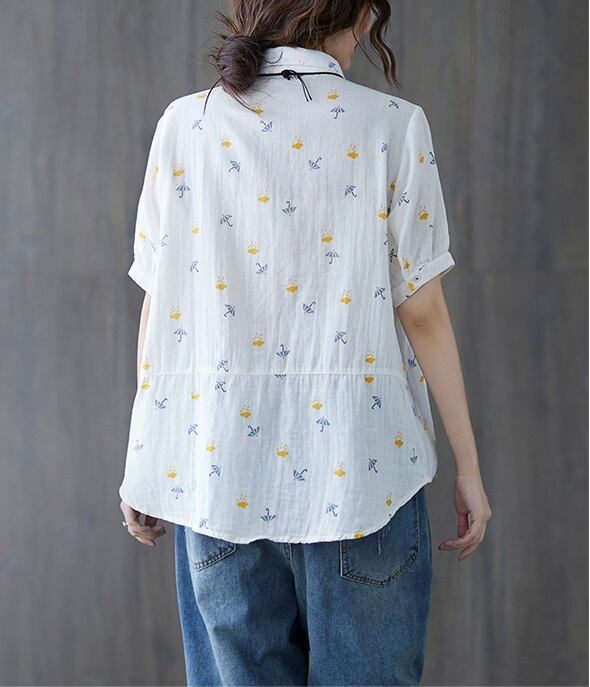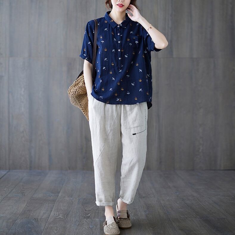 傘柄のデザインが特徴的で、甘さの中に大人の上品さを演出します。柔らかいコットン素材を使用しているため、さらっとした着心地で、特に春から夏の暑い季節にぴったりです。前開きのYシャツスタイルは、通学やショッピング、カフェでのひとときに欠かせない存在感を発揮します。