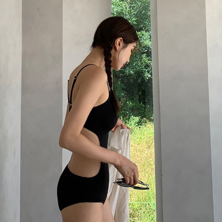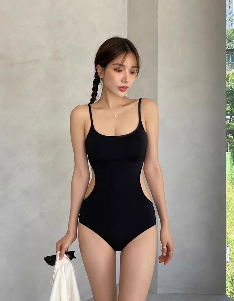 シンプルでありながら華やかなノースリーブのモノキニデザインは、洗練された女性らしさを演出しつつ、伸縮性のある素材が着心地を良くし、スタイルアップ効果も抜群です。