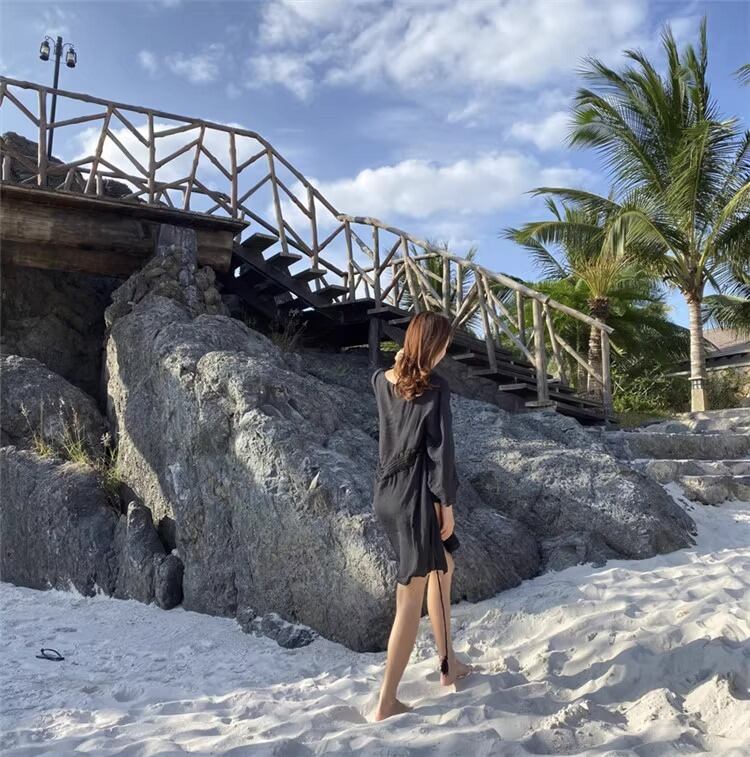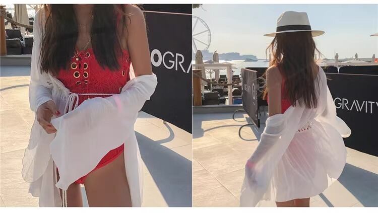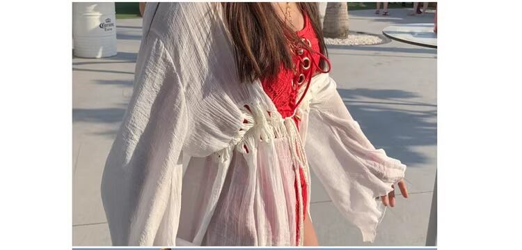 水着の上にさらっと羽織れば、紫外線対策や日焼け防止にも役立ち、こなれ感のあるおしゃれスタイルが完成します。