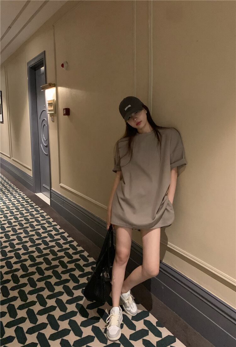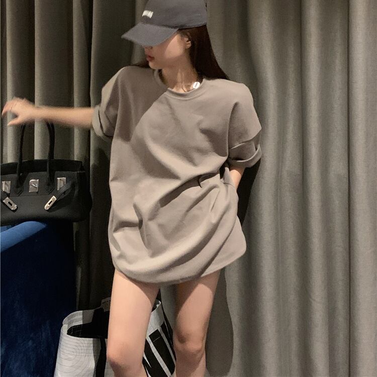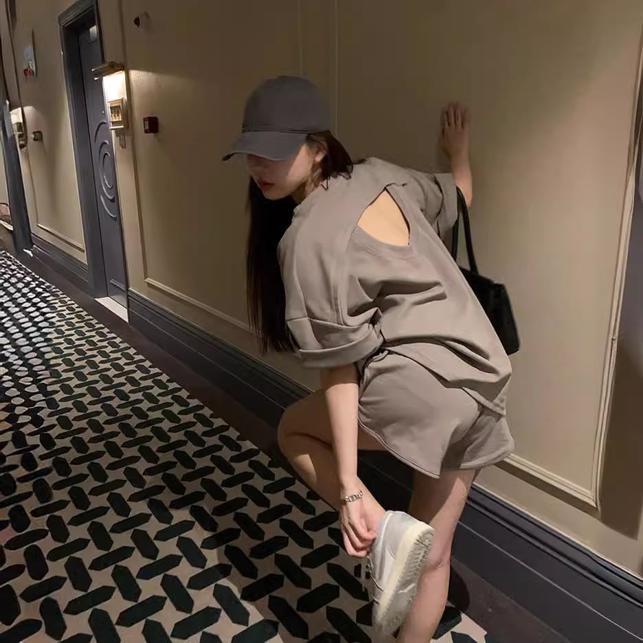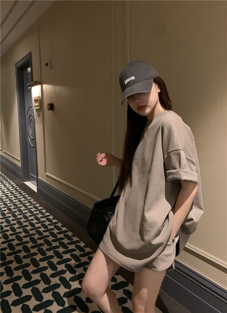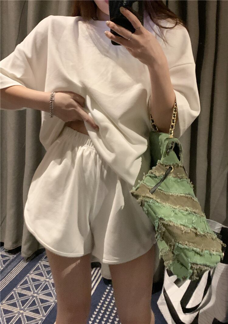 シンプルな半袖トップスとショートパンツのセットアップ。