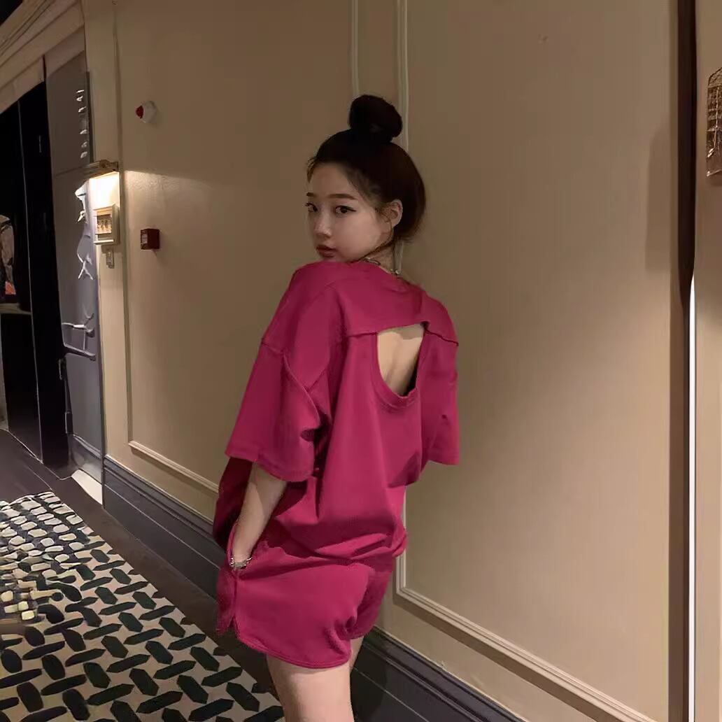 背中開きデザインとルーズなシルエットで