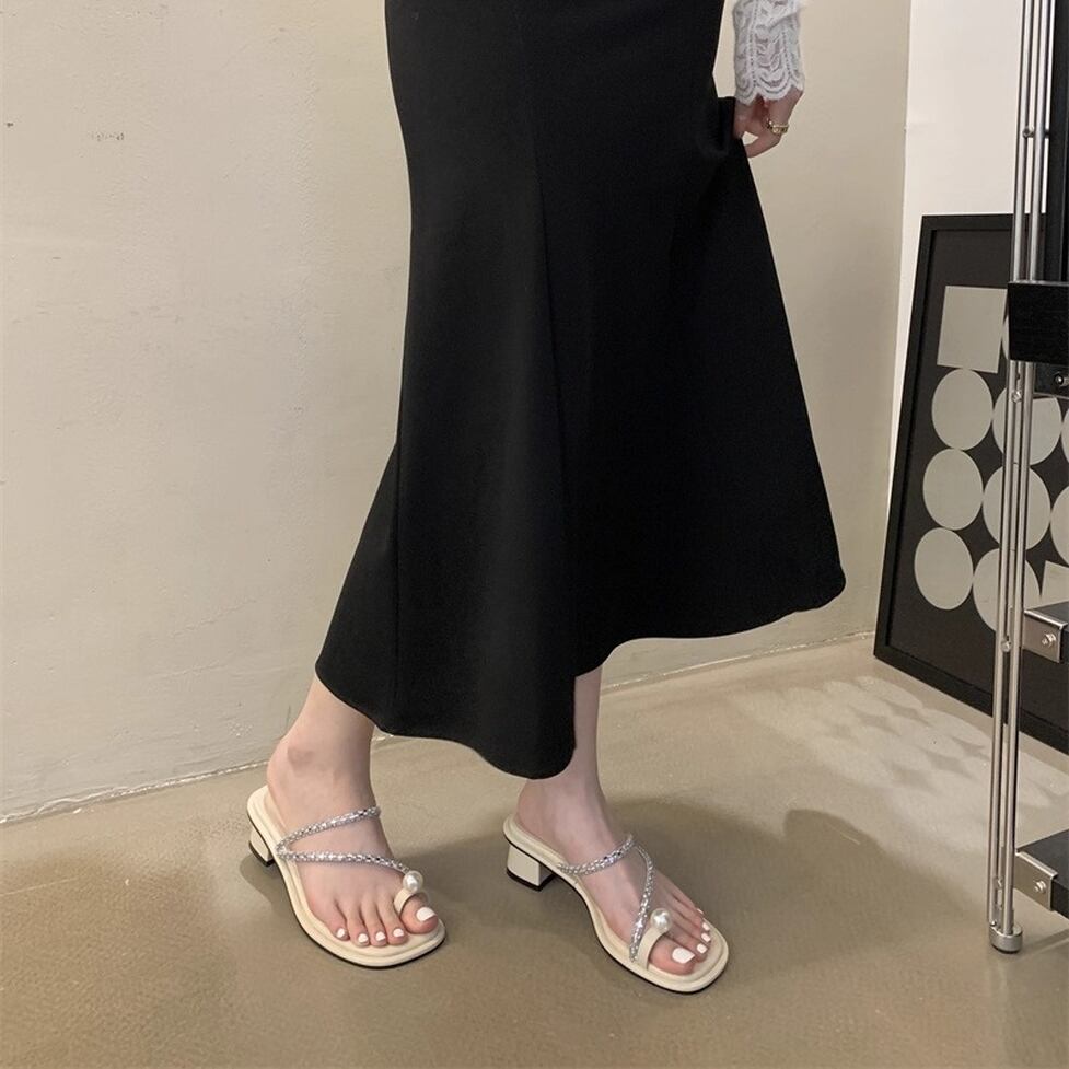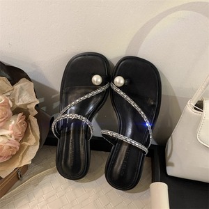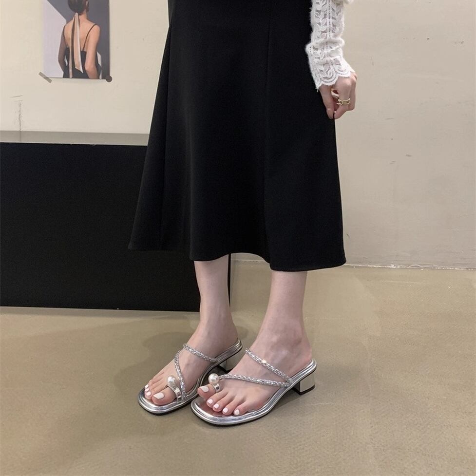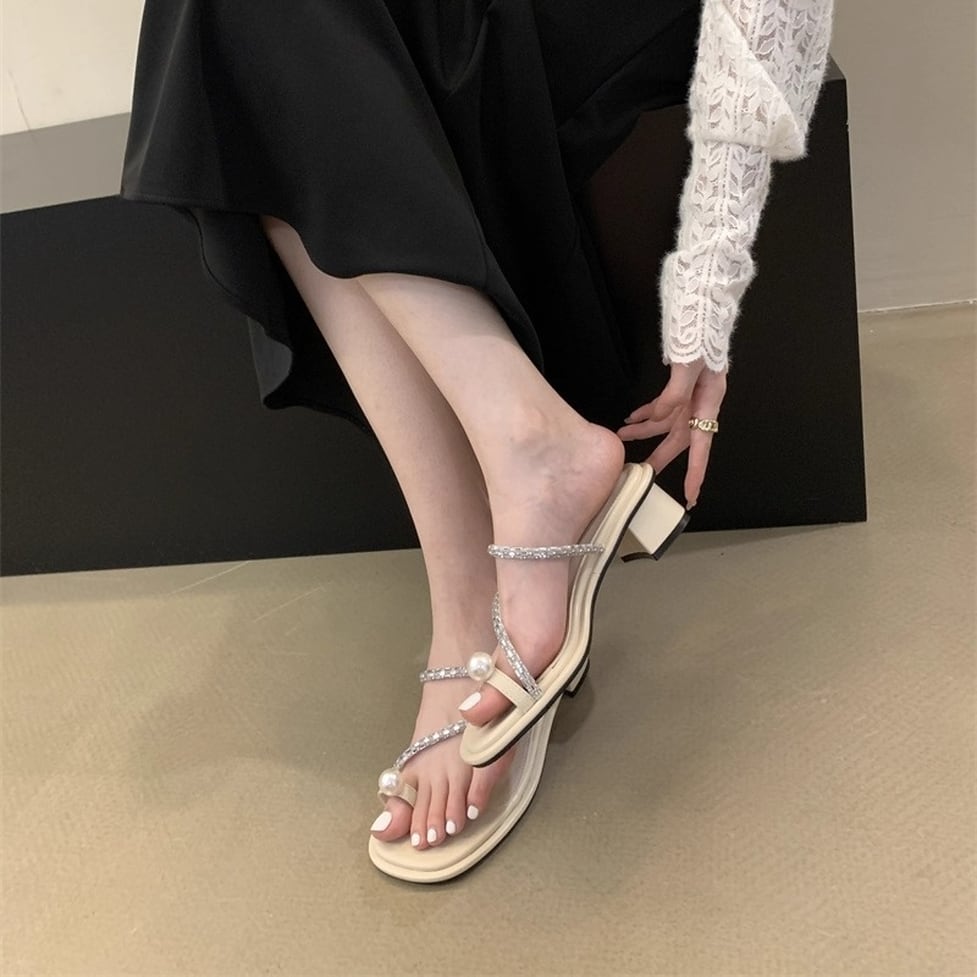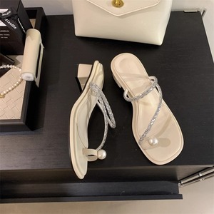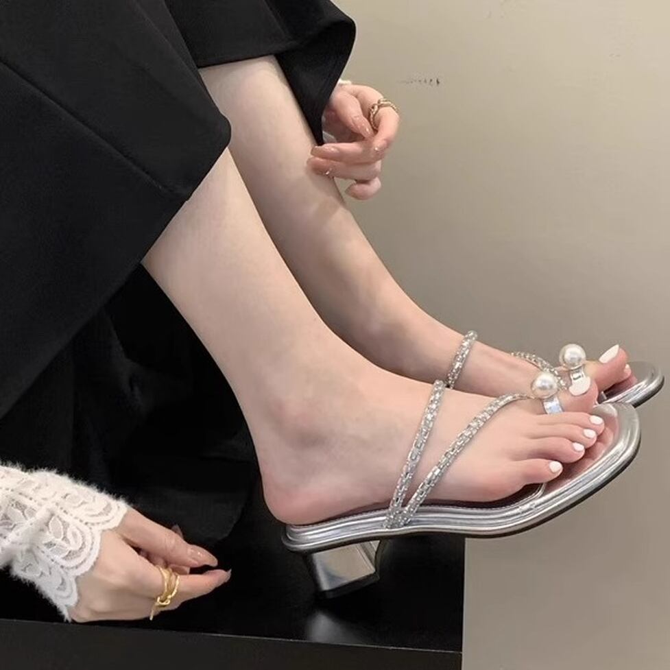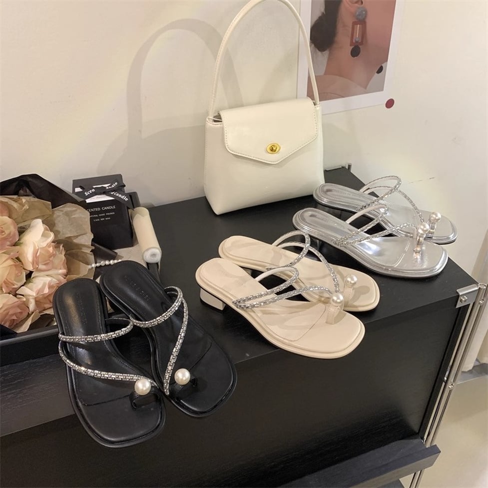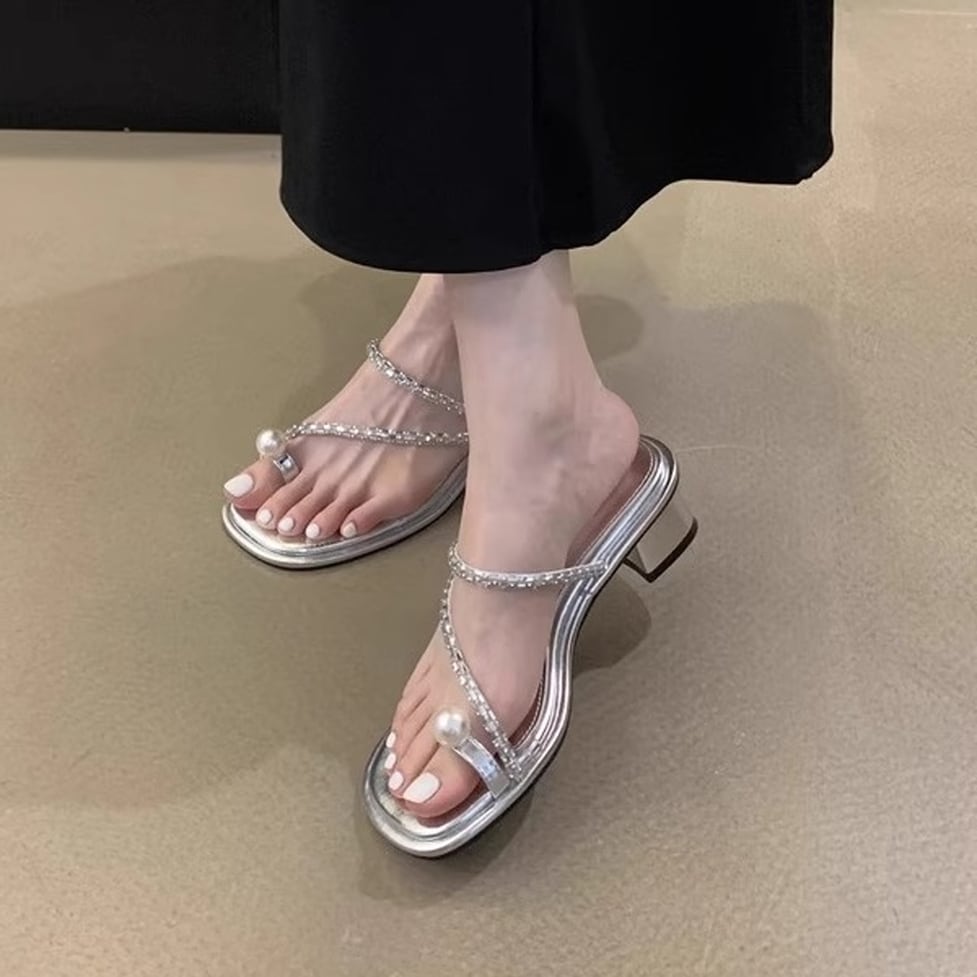 トップに輝くパールモチーフが目を引くコンフォートサンダル。トングのフェイクパールがアクセントになった華やかなデザイン。アッパーを流れるようなきらめくストラップも足元を引き立ててくれます。