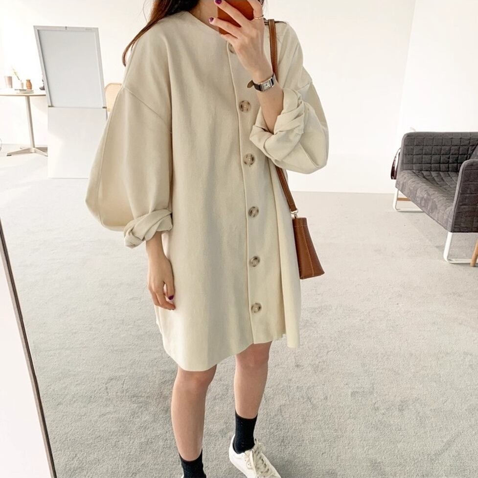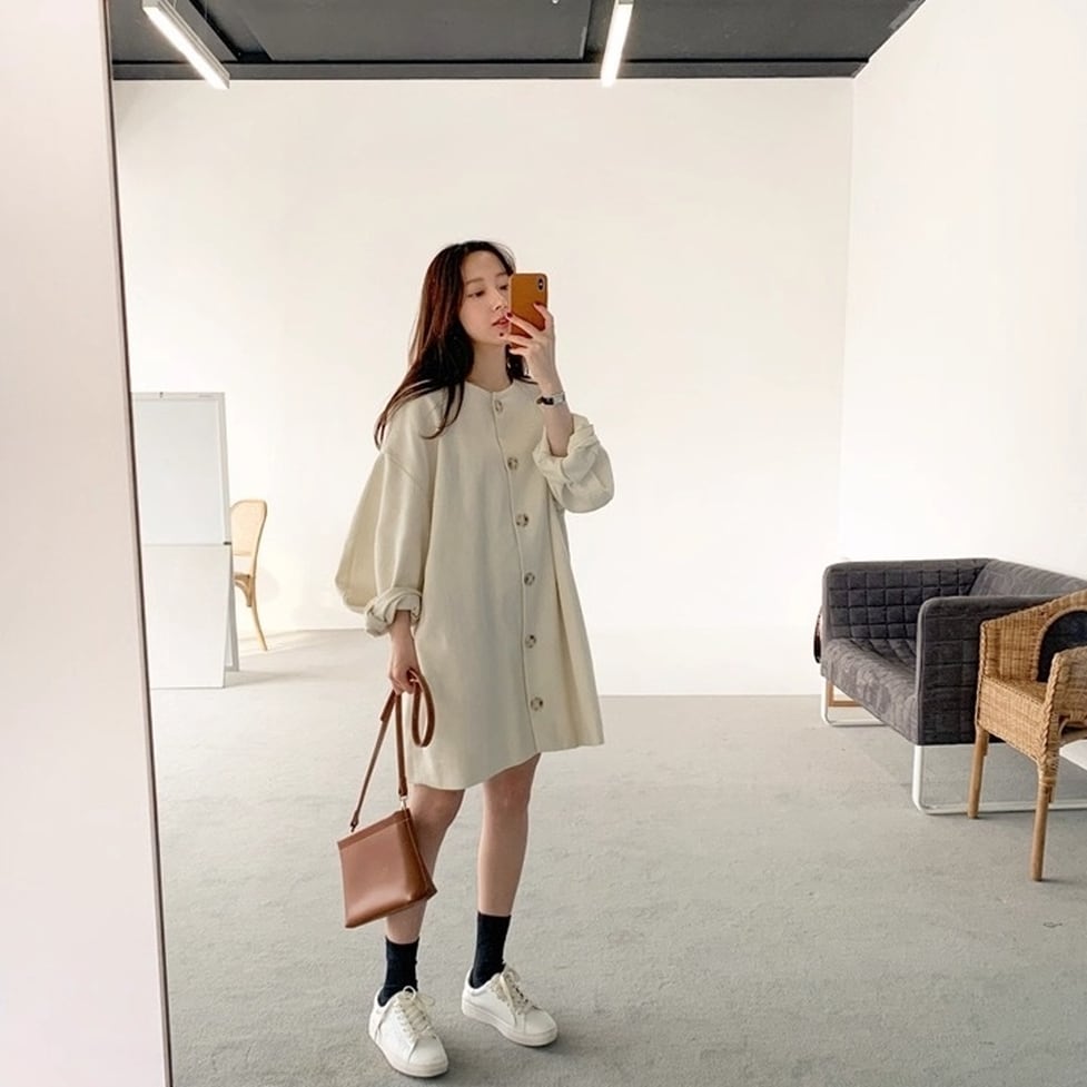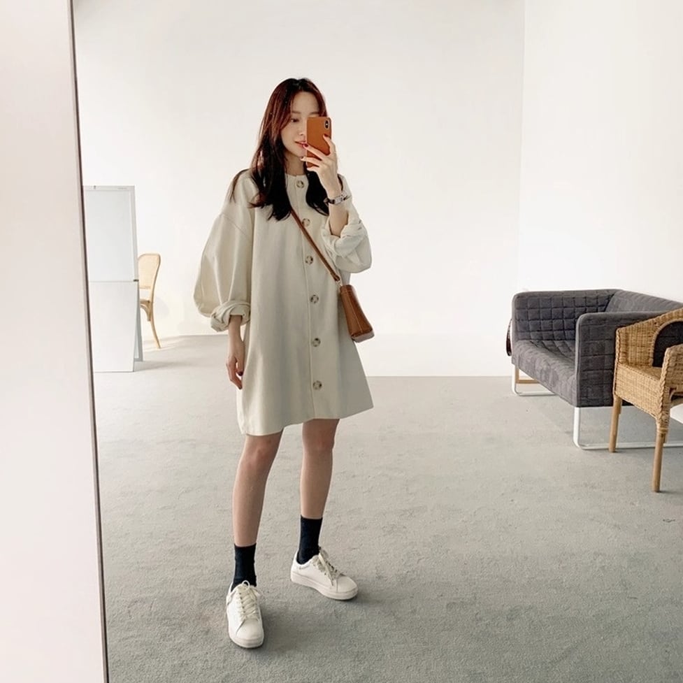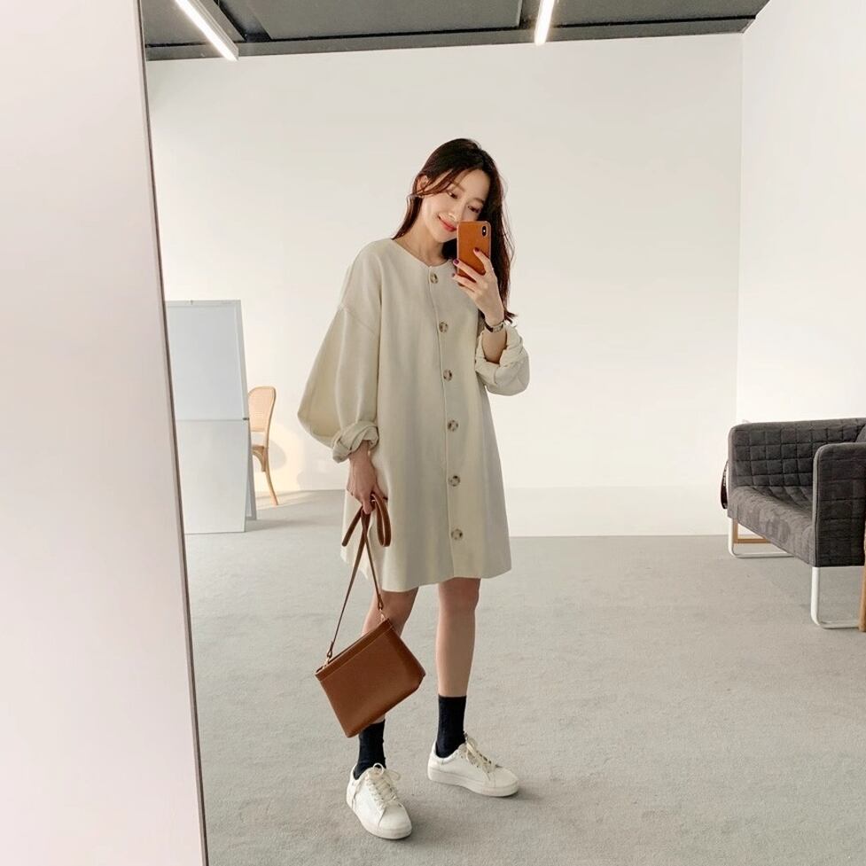 カジュアルとキュートがバランスよくミックスされたミニワンピース。しっとりとした質感で品のよさに加えて女性らしいやわらかさも両得。ボタンデザインがアクセントとなりシンプルながらも洗練された印象を与えます。普段の日常からお出かけまで、幅広いシーンで活躍する一着です。