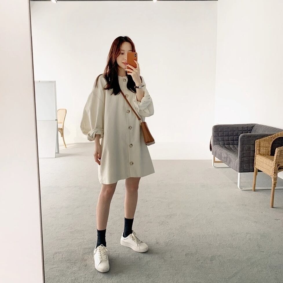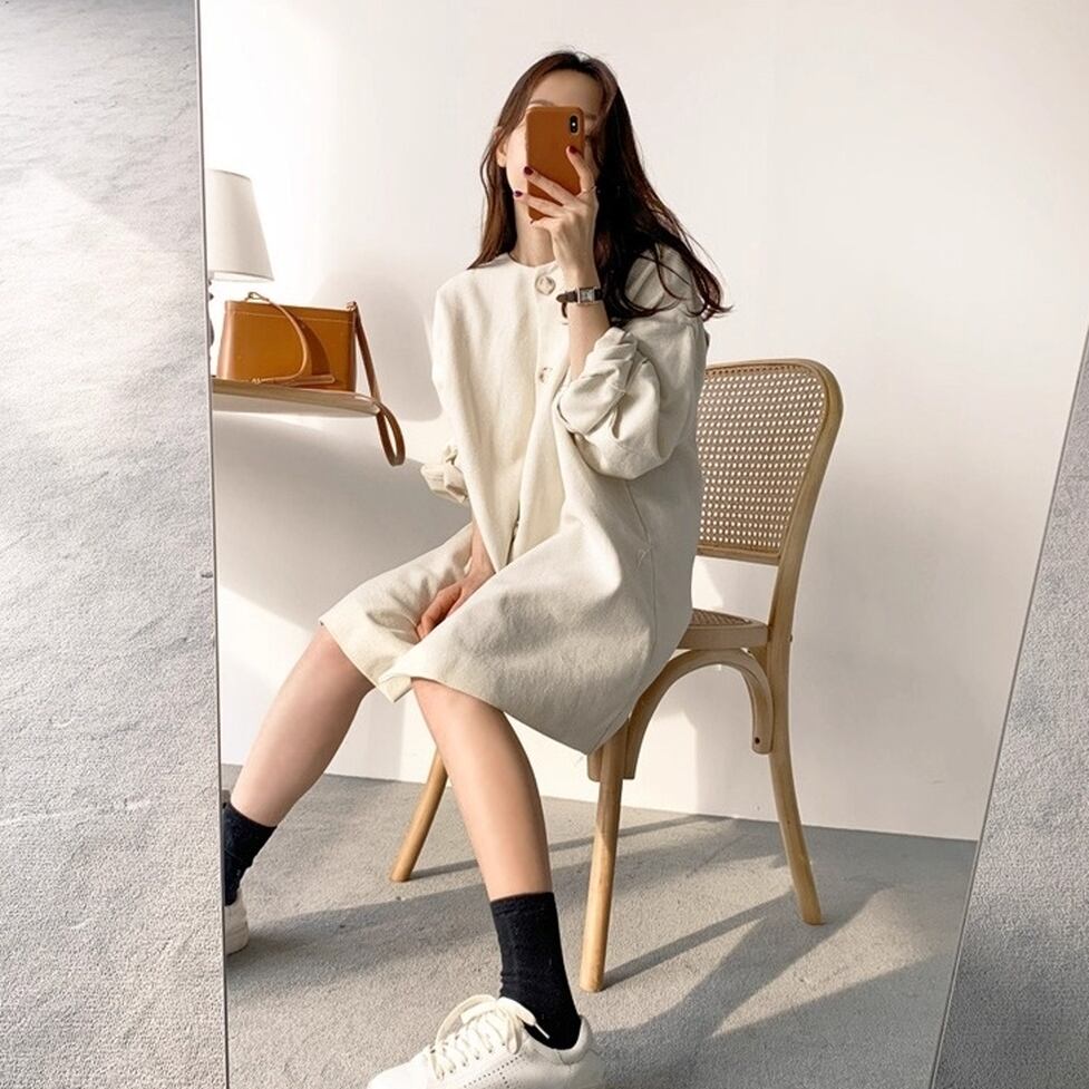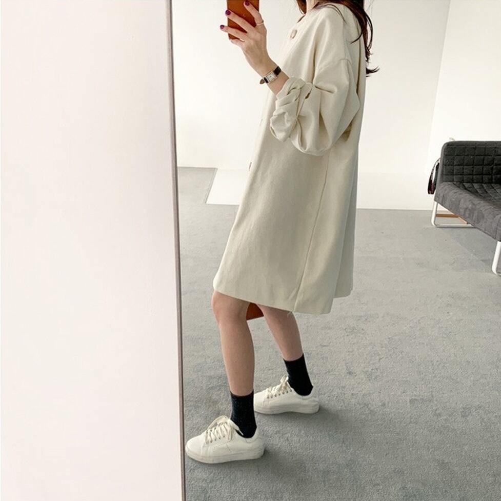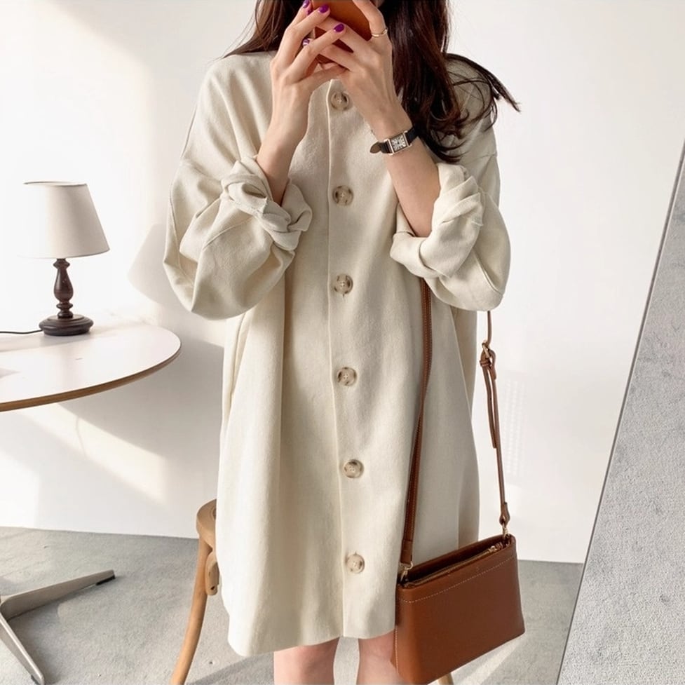 カジュアルとキュートがバランスよくミックスされたミニワンピース。しっとりとした質感で品のよさに加えて女性らしいやわらかさも両得。ボタンデザインがアクセントとなりシンプルながらも洗練された印象を与えます。普段の日常からお出かけまで、幅広いシーンで活躍する一着です。