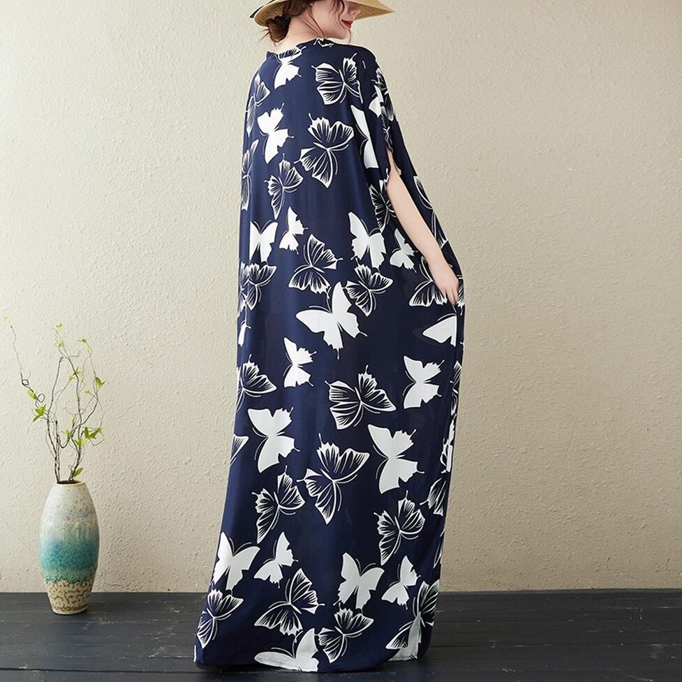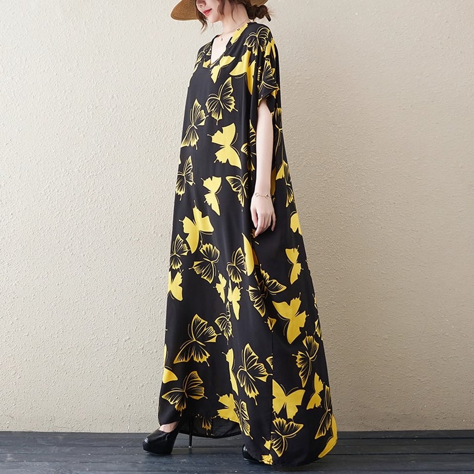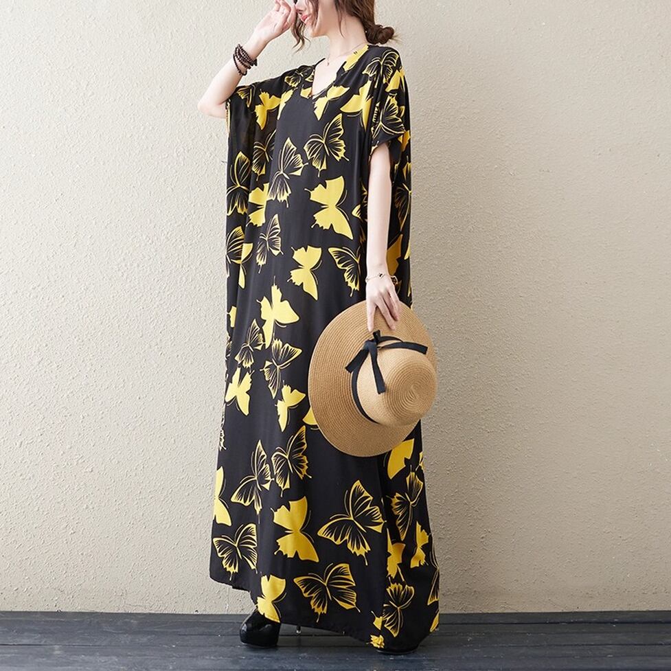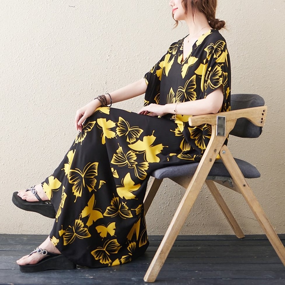 着るだけで印象的な蝶々柄ボリュームワンピース。脱力しつつも統一感のある小粋な装いに。ゆるっとしたシルエットと大胆なプリントで周りの視線を奪う一枚。