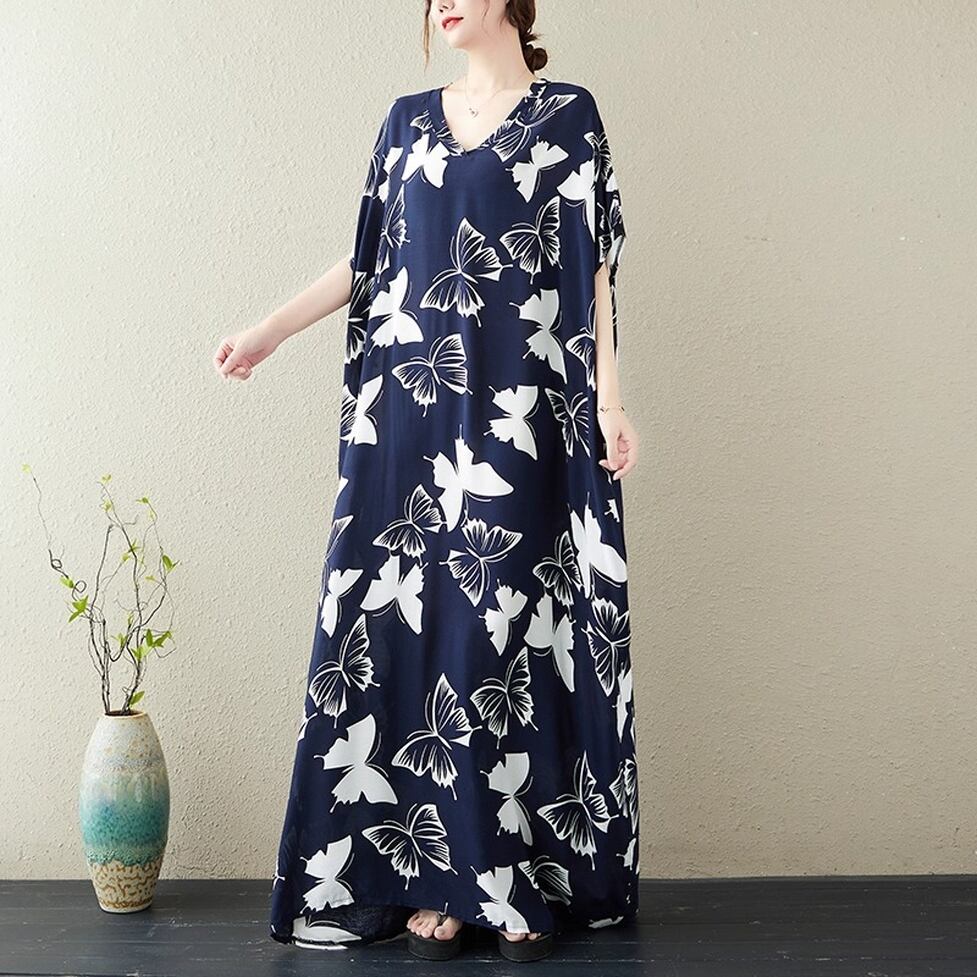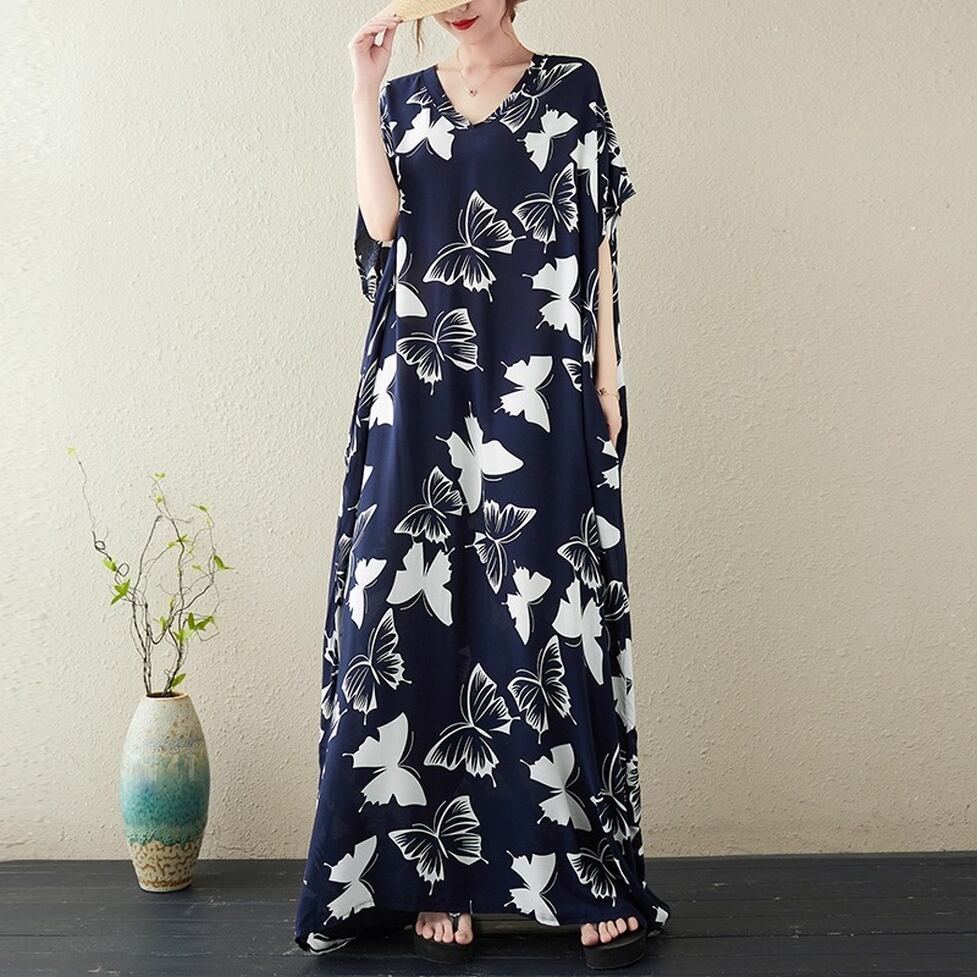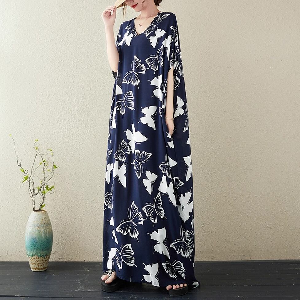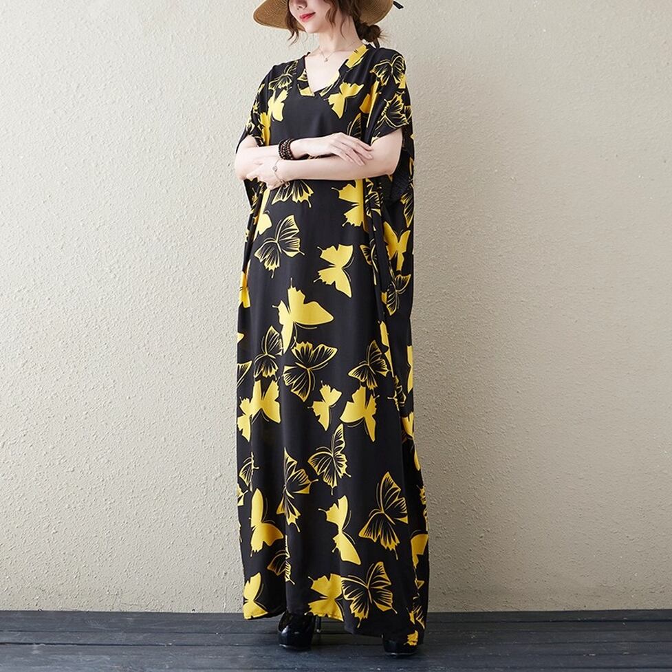 着るだけで印象的な蝶々柄ボリュームワンピース。脱力しつつも統一感のある小粋な装いに。ゆるっとしたシルエットと大胆なプリントで周りの視線を奪う一枚。