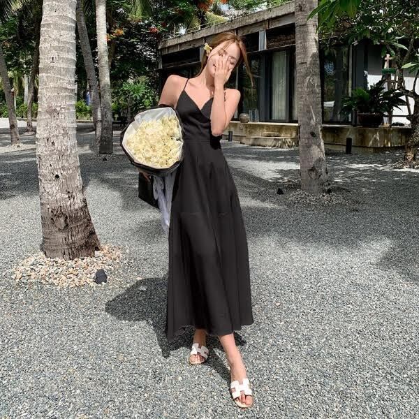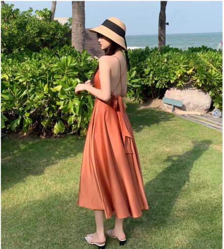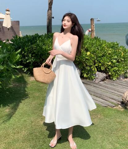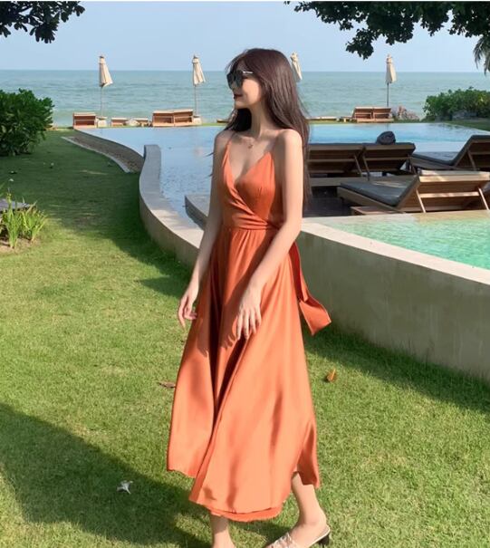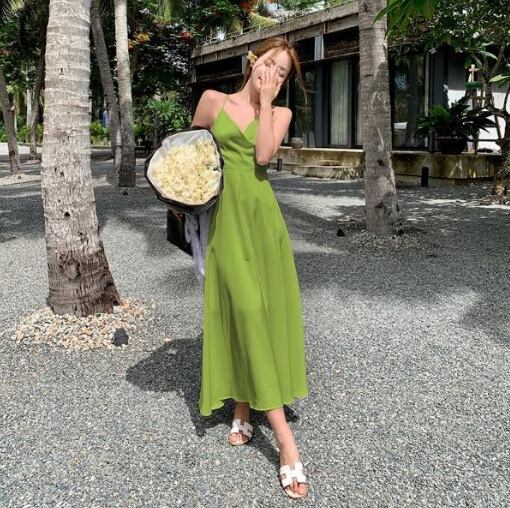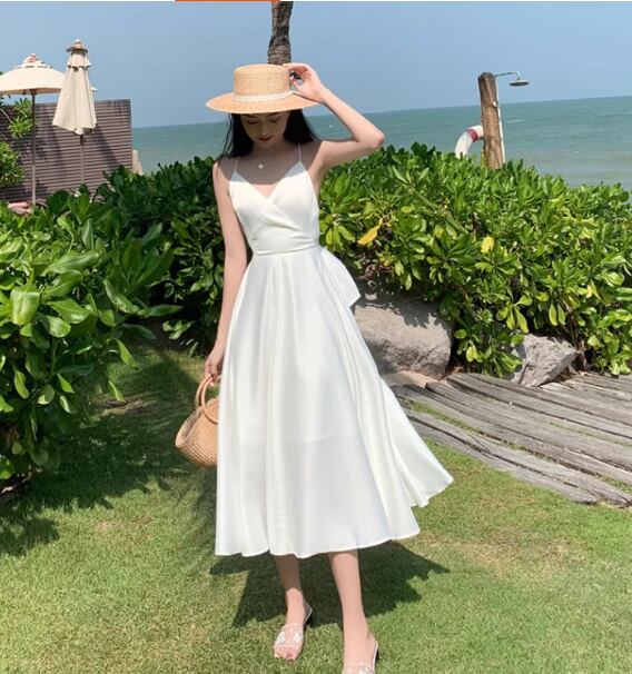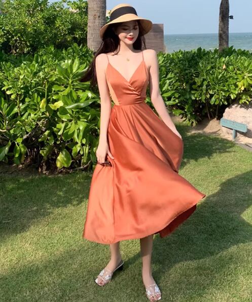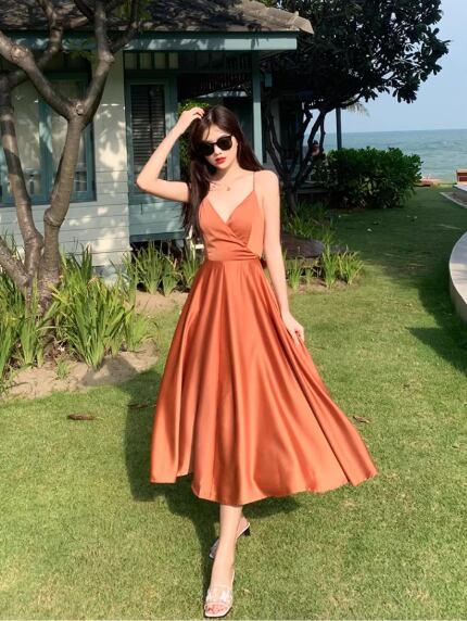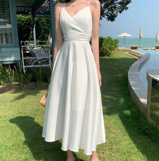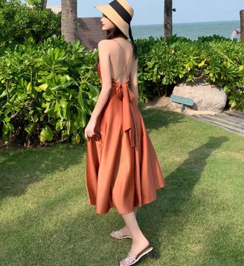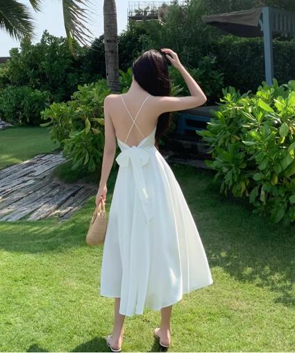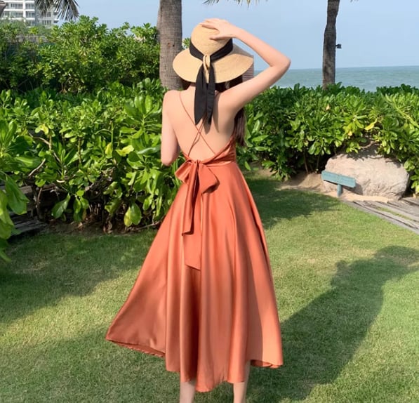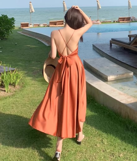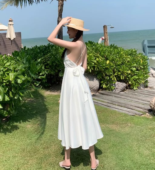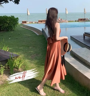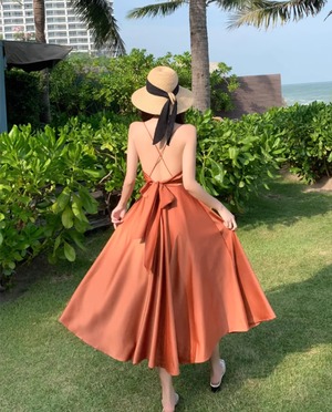 軽やかな雰囲気を纏えるミディアム丈のキャミワンピース。深めのVネックと背中開きデザインに加え、リボン付きのウエストマークがスタイルアップを叶え、女性らしいAラインシルエットを引き立てます。シンプルながらも大人可愛く、デイリーから特別なシーンまで活躍する一枚です。