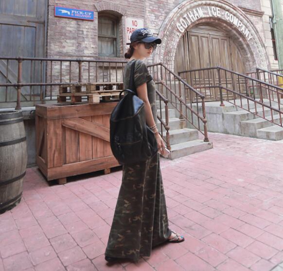 ロングマキシデザインで、ゆったりとした着心地が特徴。半袖で涼しげな印象を与え、暑い季節にぴったりです。