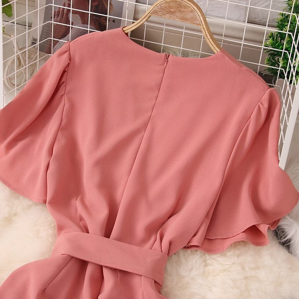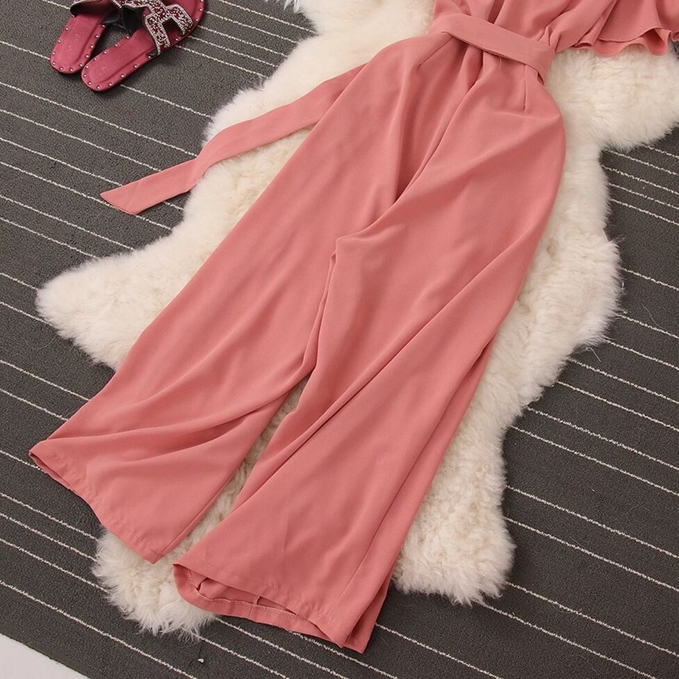 スタイルアップを狙えるシフォン素材のパンツオールインワン。大人のチャーミングな一面がきわ立つハンサムとフェミニンを両立。好感度の高い女っぽさに着地してスタイルアップも期待できる。色みをリンクさせた一体化がそれとなくドレスアップ。