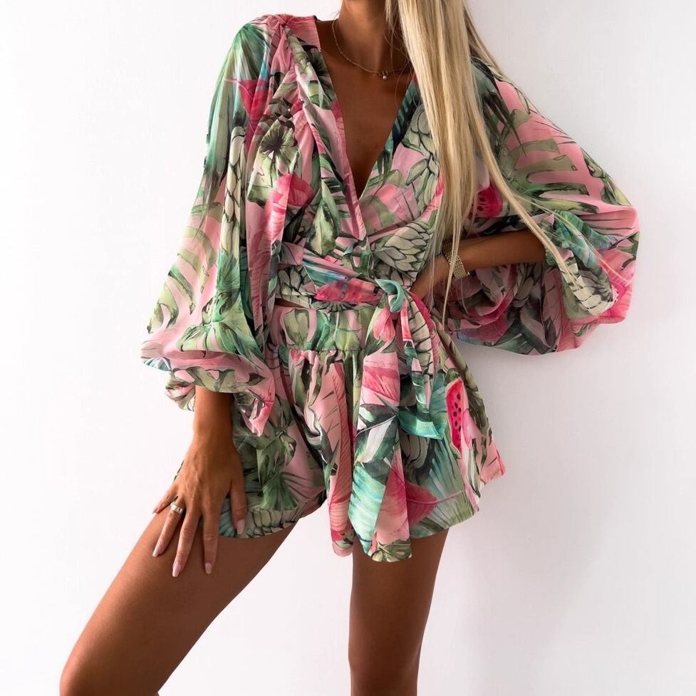 ボタニカルプリントがあでやかなオールインワン。浮かずに着回せるキレイな色は着方で遊んでもシックを保てる。きちんと感をあと押しする端正な落ち着きでハンサムに仕上げて。ほんのり甘くまろやかながら洗練された印象はキープ。