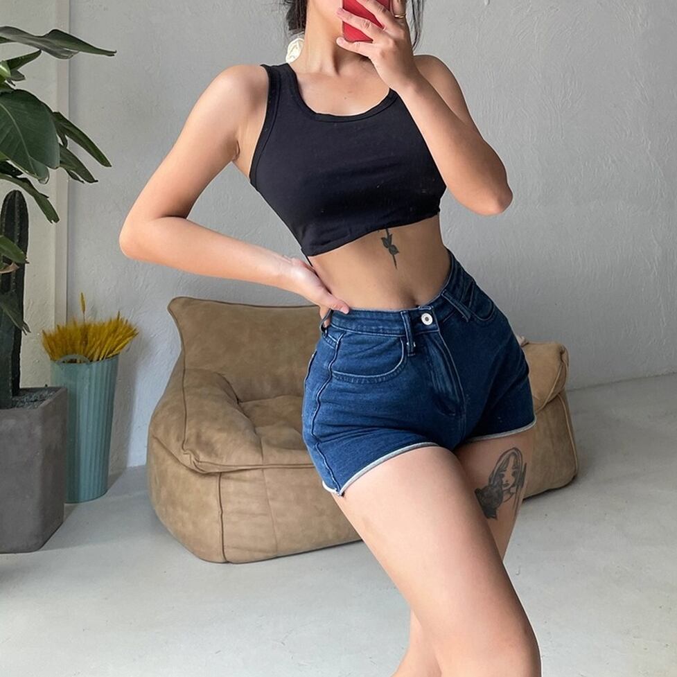 裾のめくれた裏地がポイントのショートデニムパンツ。どんな服装とも親しめる軽やかな奥行きを。ほどよい甘さをかもしだせるソフトな印象に。表情がやさしく変わり装いをより柔和に更新。どんなテイストとも調和をとりつつさわやかで明るい印象がもたらされる。