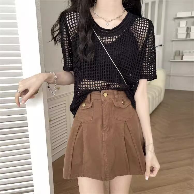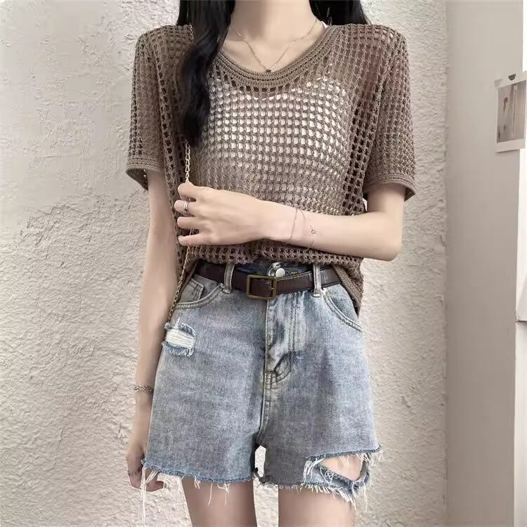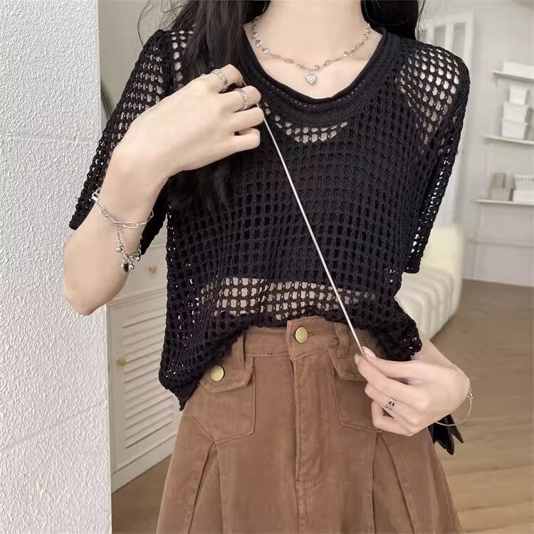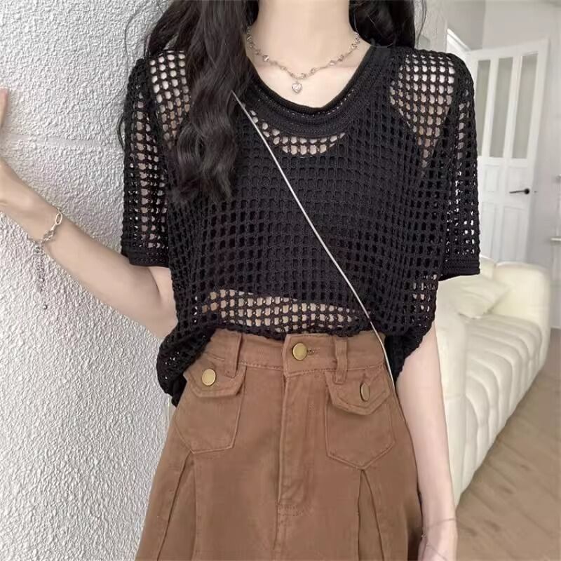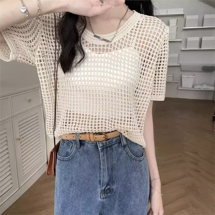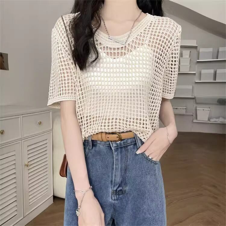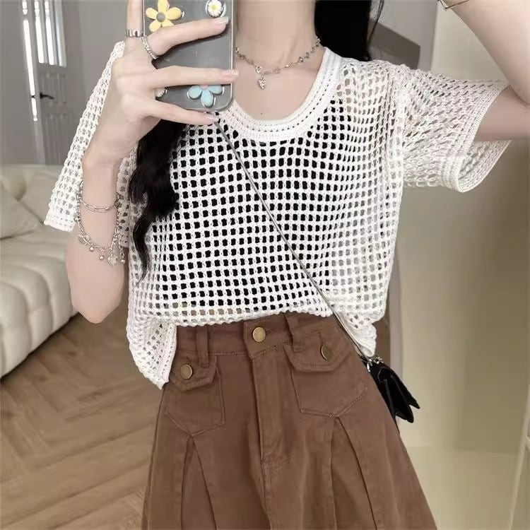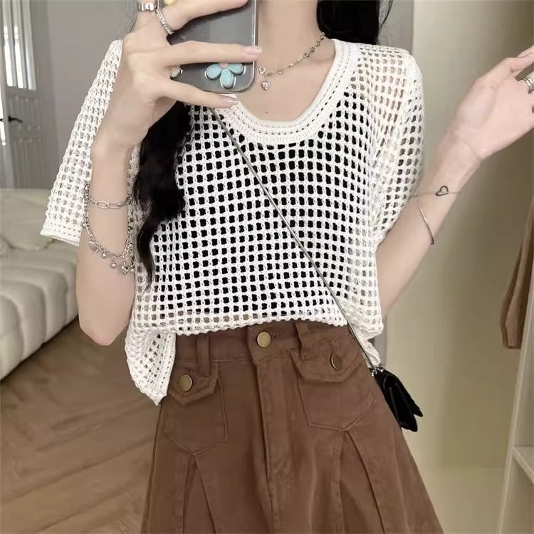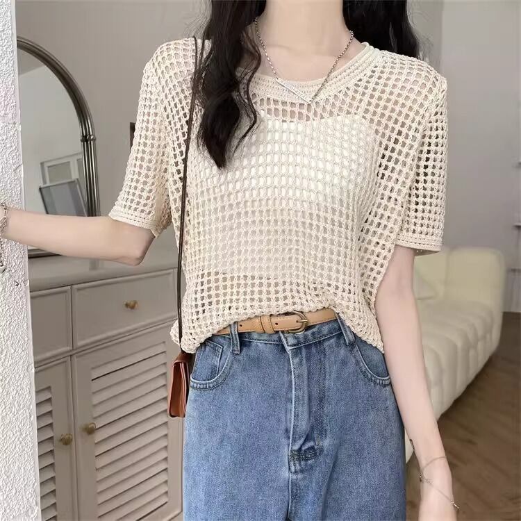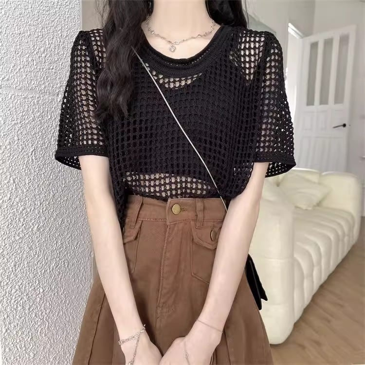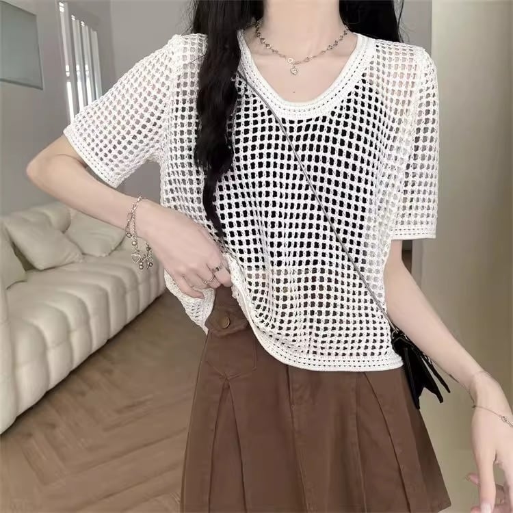 涼しげな透け感が魅力のメッシュ編みニットトップスです。