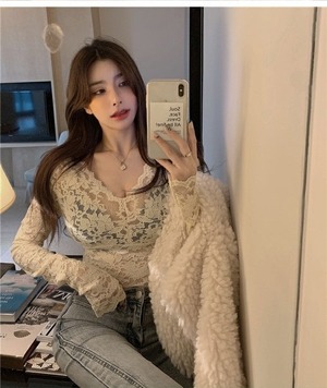大人可愛い魅力満載のレースの長袖プルオーバーです。
