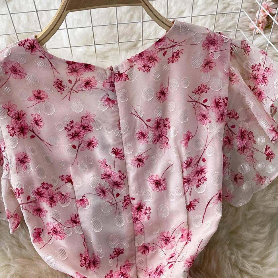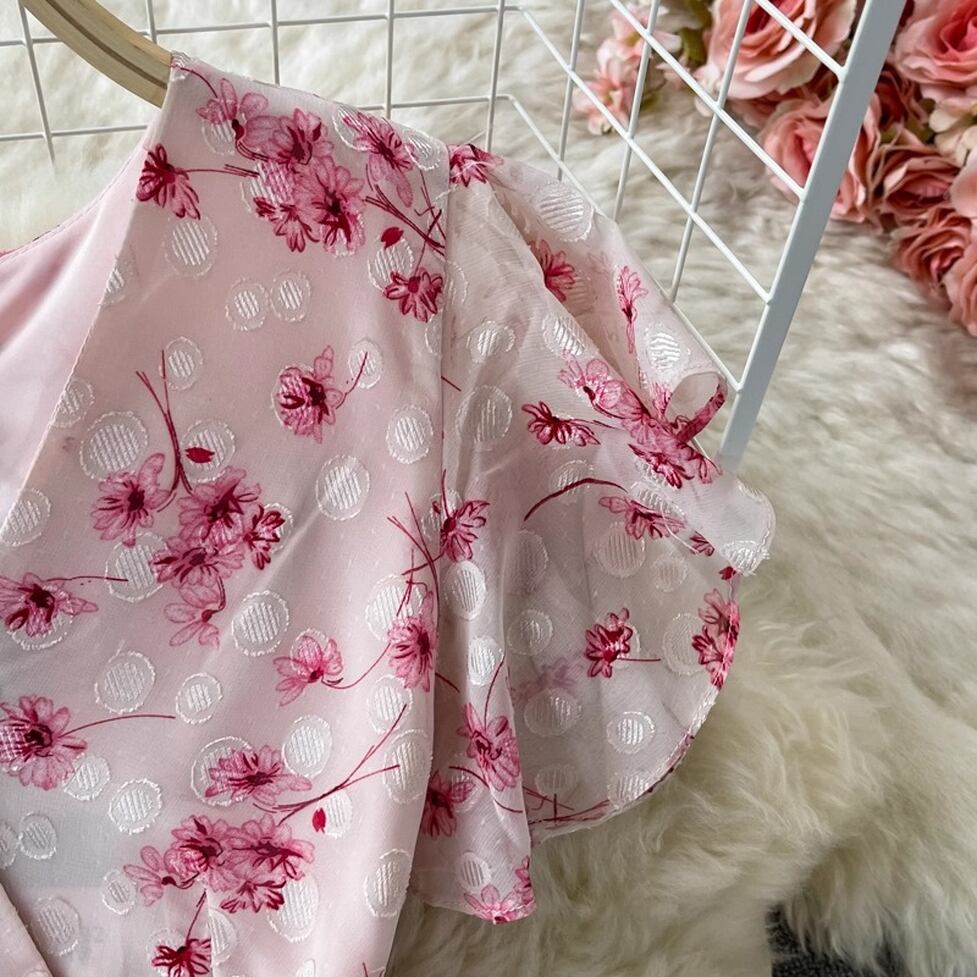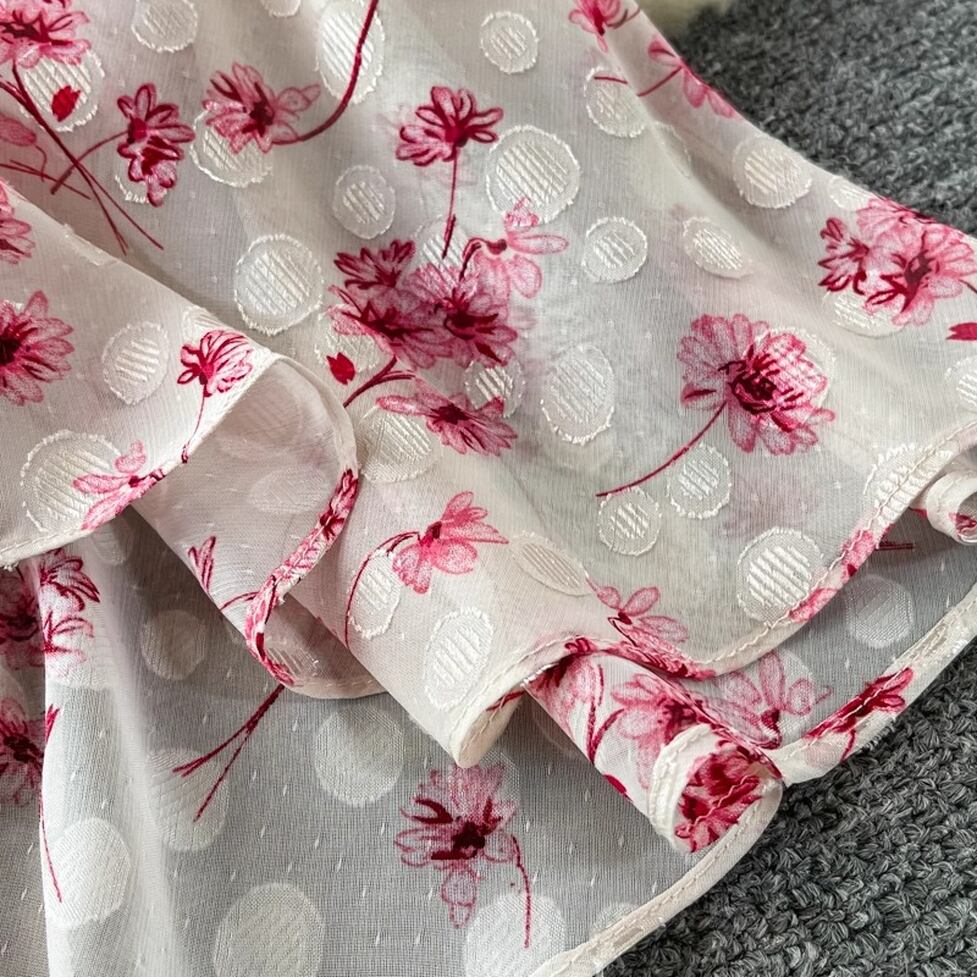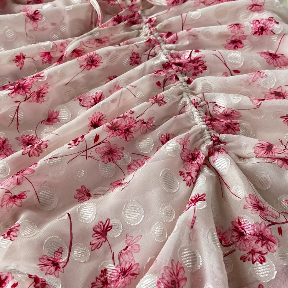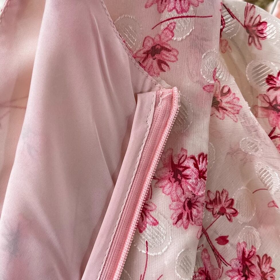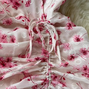 華やかさ漂うドレススタイルのオリジナル花柄が目を惹くワンピースです。軽やかなシアー素材にギャザーやフリルをたっぷりあしらったエレガントな1着。ゆったりしながらもメリハリをつけた美スタイルにみせてくれる女性らしいアイテムです。