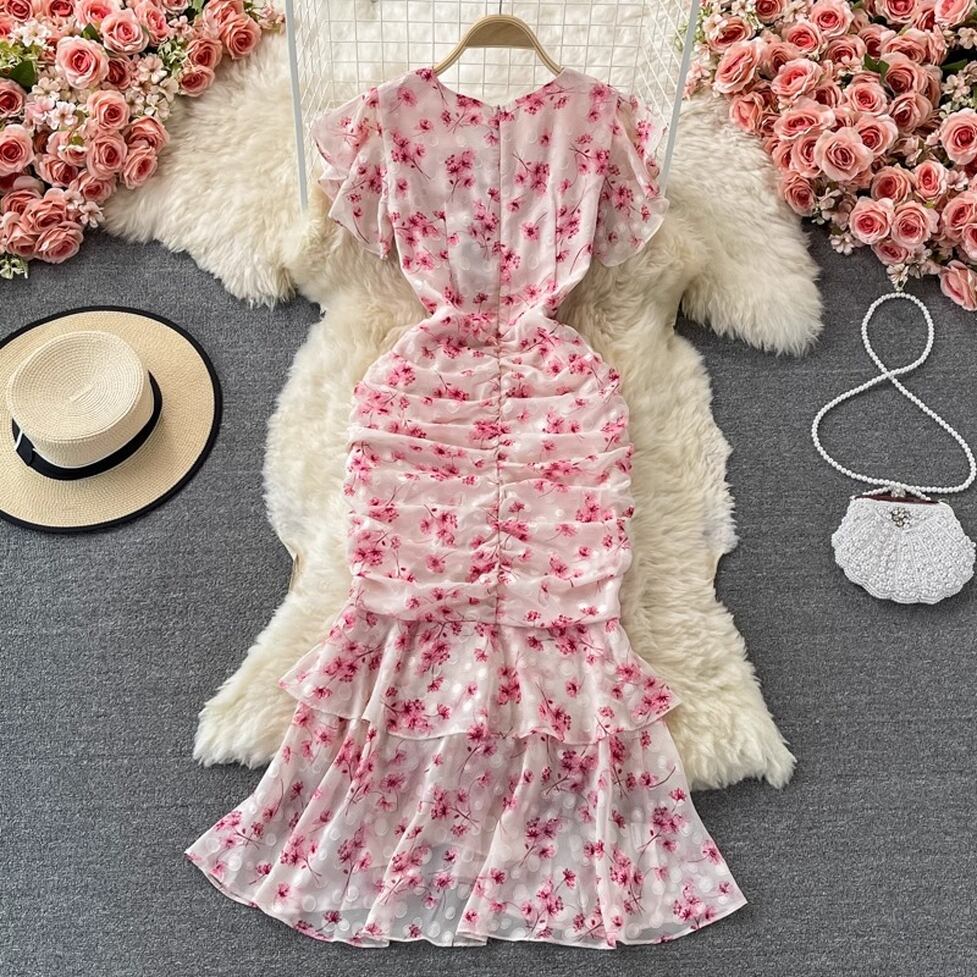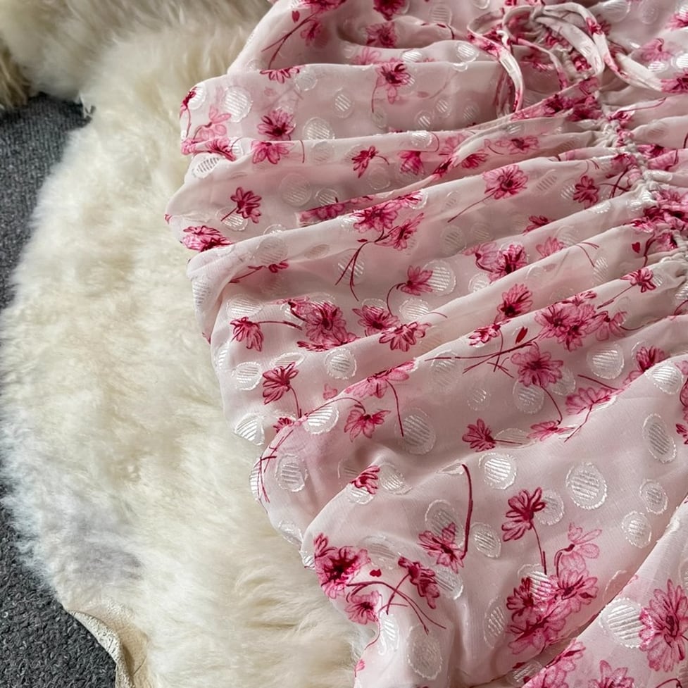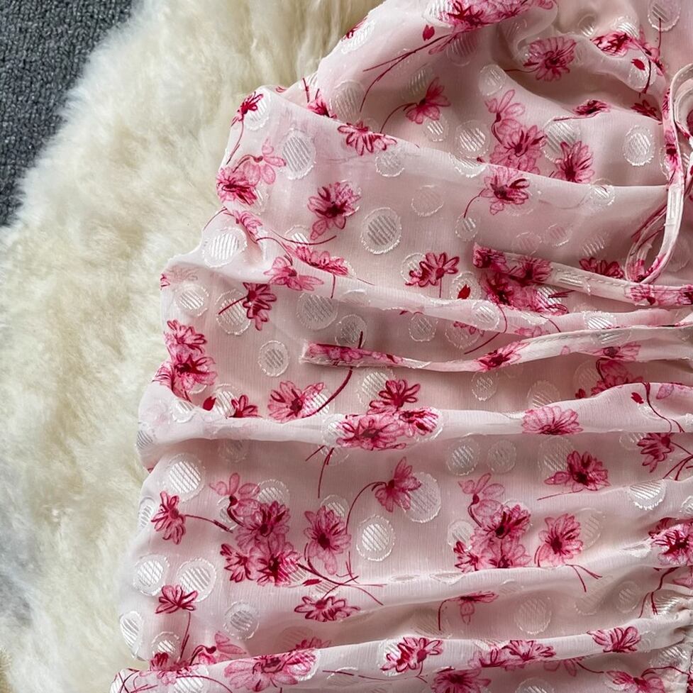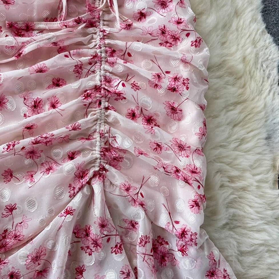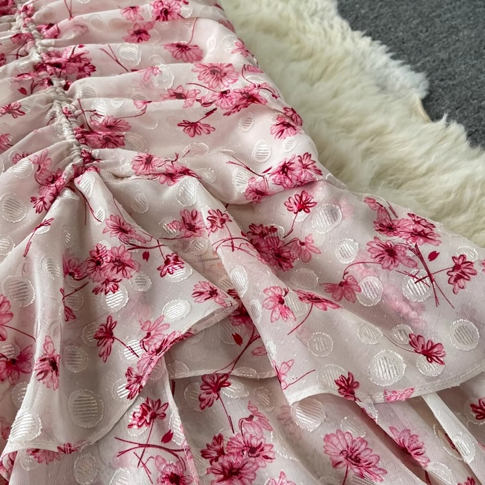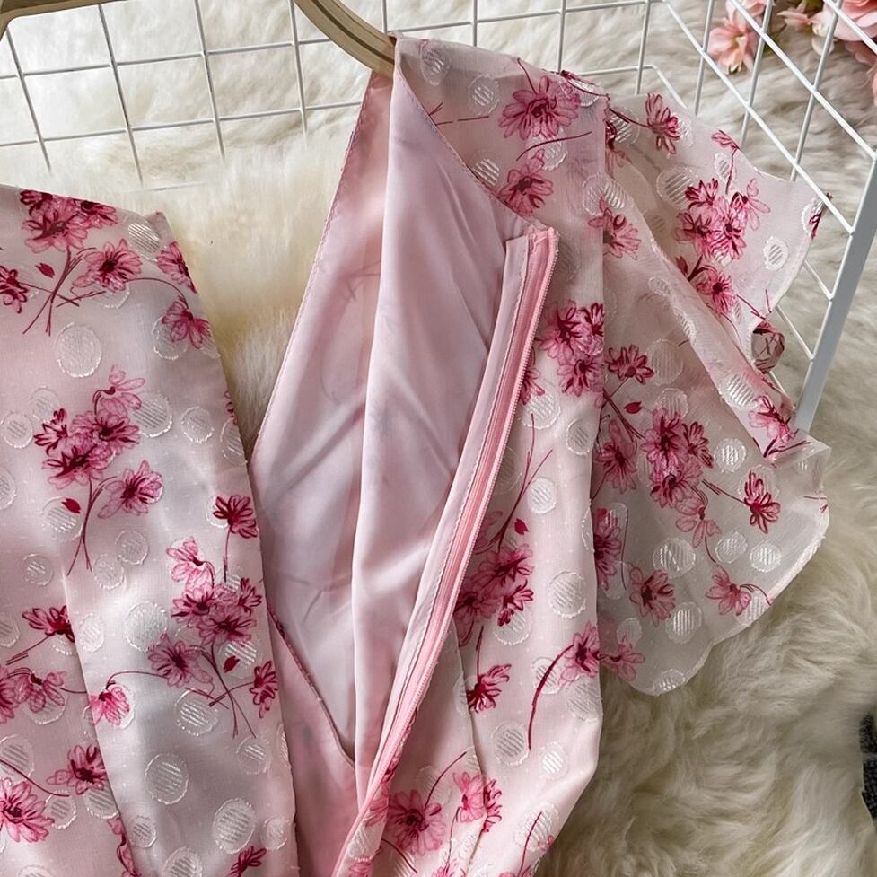 華やかさ漂うドレススタイルのオリジナル花柄が目を惹くワンピースです。軽やかなシアー素材にギャザーやフリルをたっぷりあしらったエレガントな1着。ゆったりしながらもメリハリをつけた美スタイルにみせてくれる女性らしいアイテムです。
