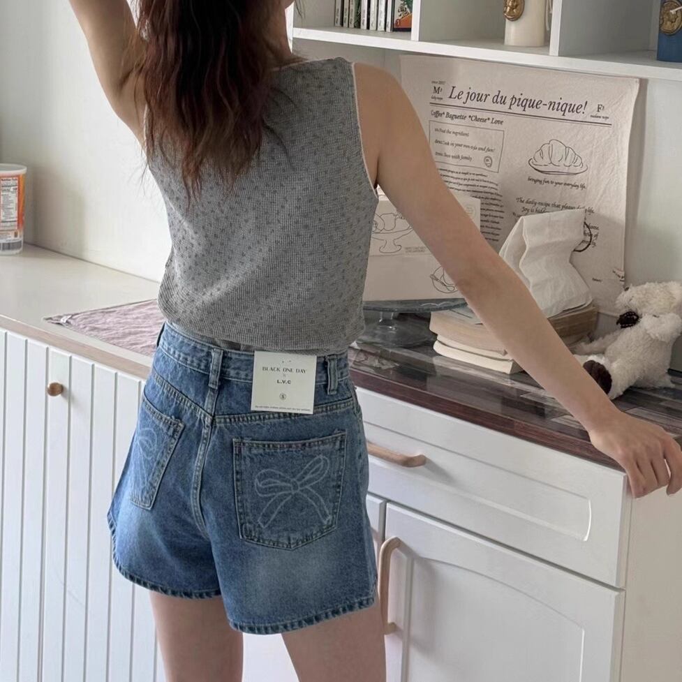スタイルアップ効果を発揮するハイウエストと台形シルエットが幅広いサマーコーデに活躍するデニムハーフパンツ。ウエストの細見えを叶えつつ、ベーシックなデザインがデイリーユースにぴったりの一枚です。ヘルシーな脚見せルックが手軽に叶います。トップスをインしてすっきりと着こなすのがおすすめ。