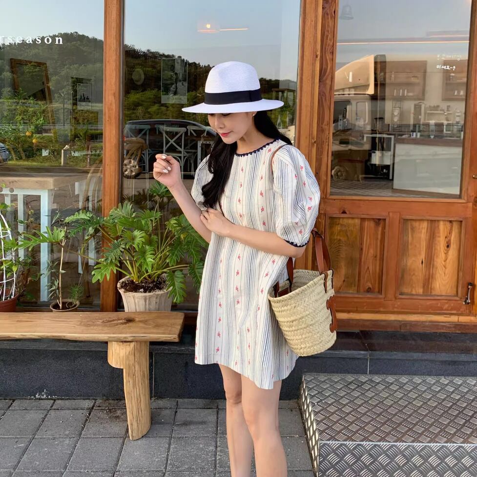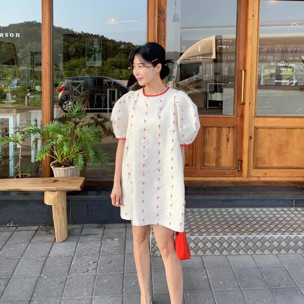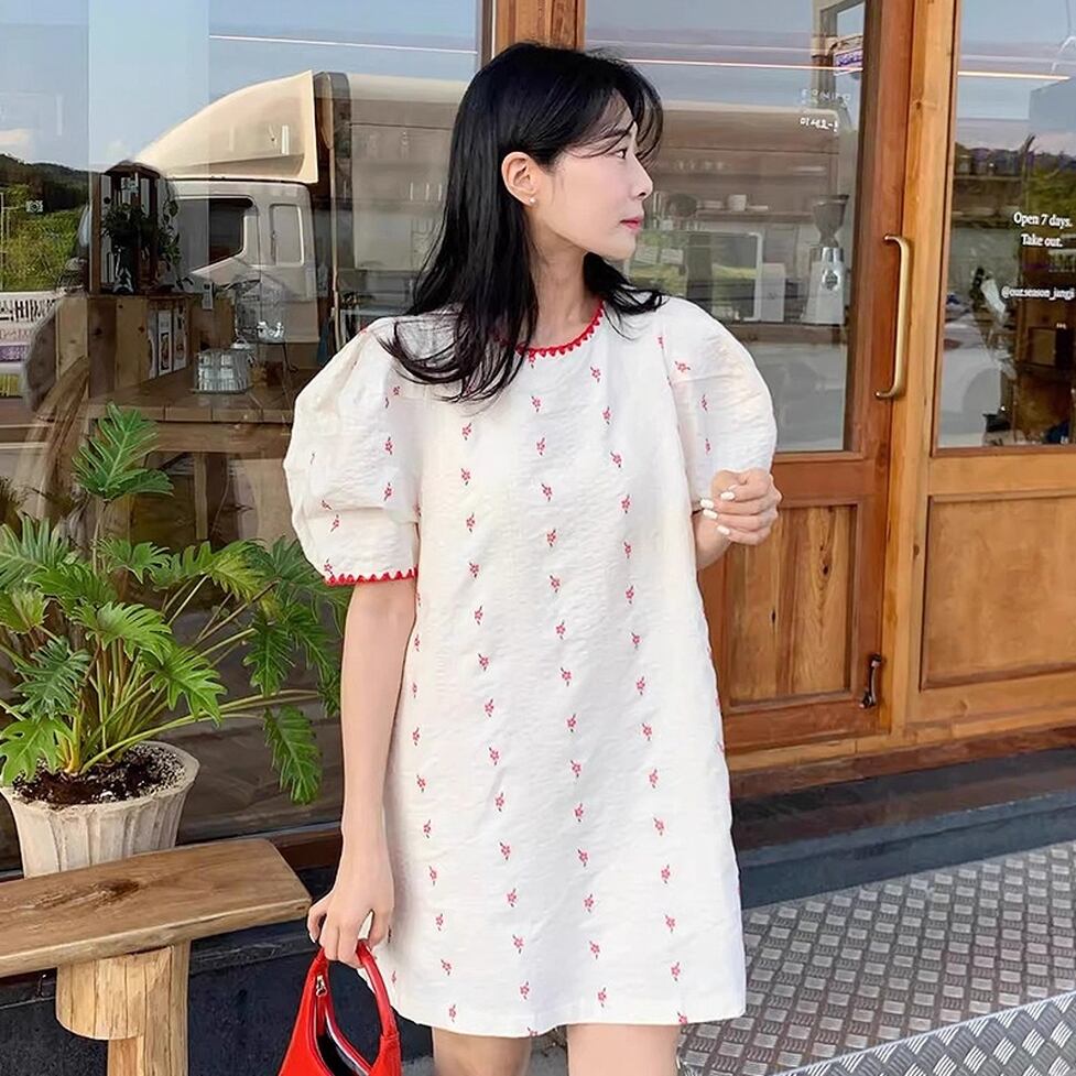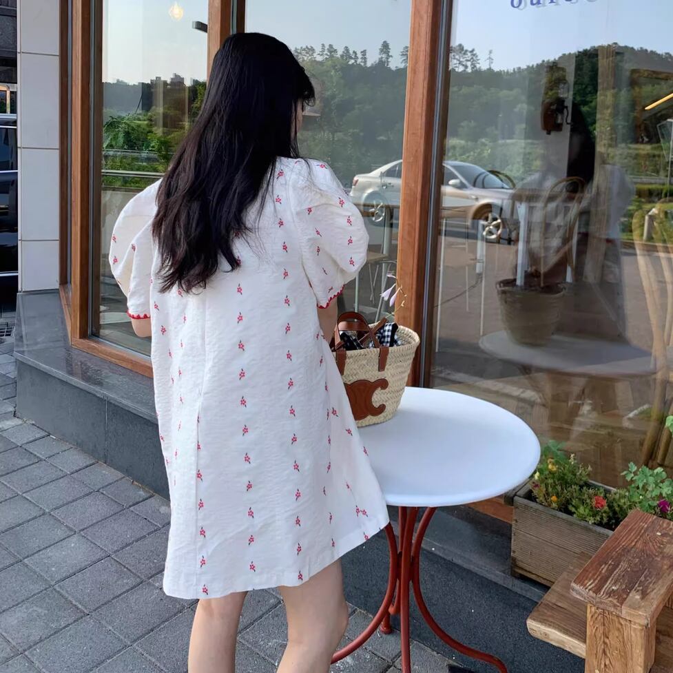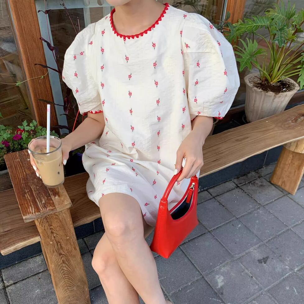 花柄刺繍がかわいいミニワンピース。花柄を散りばめた女の子らしくキュートな雰囲気。ふんわりボリュームシルエットがかわいいバルーンスリーブ。Aラインのガーリーなシルエットに仕上がります。