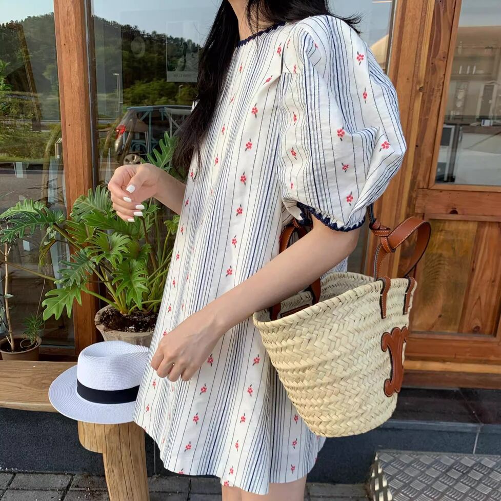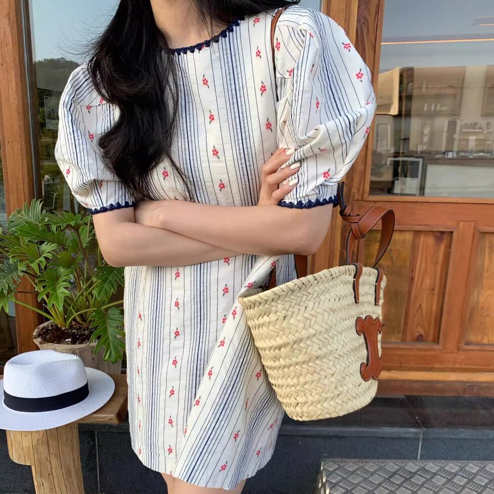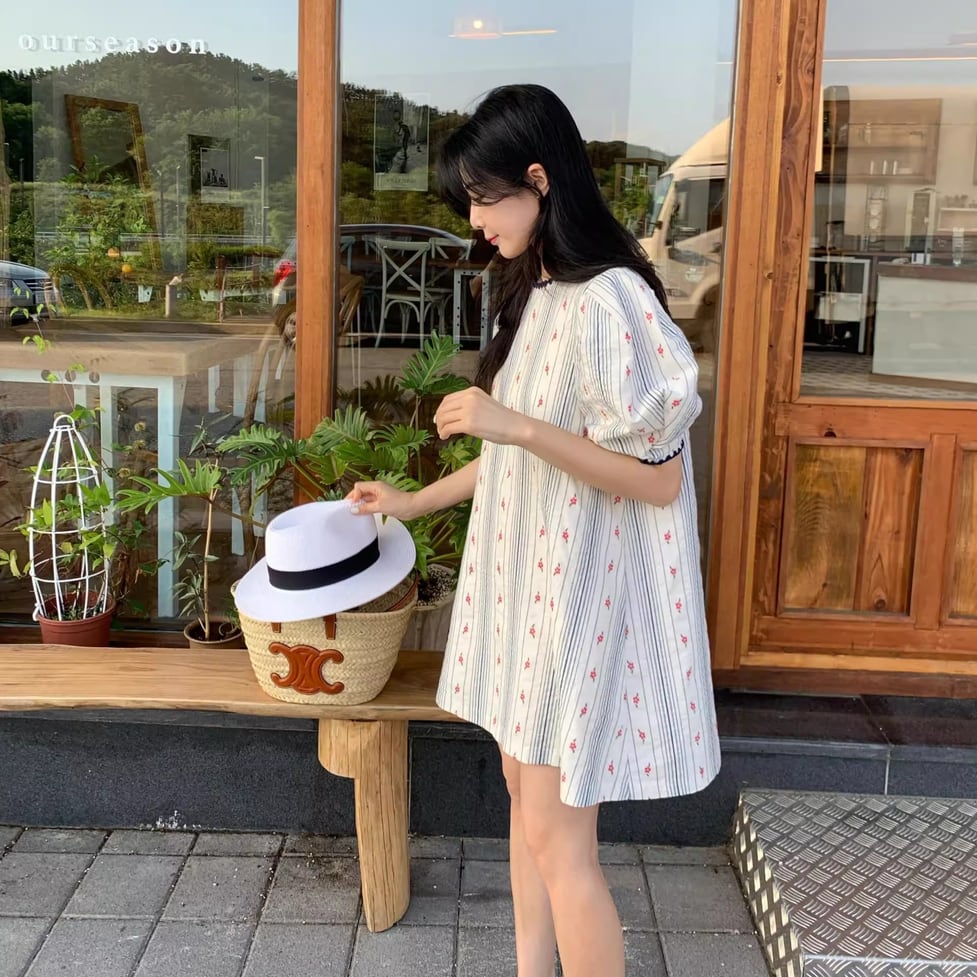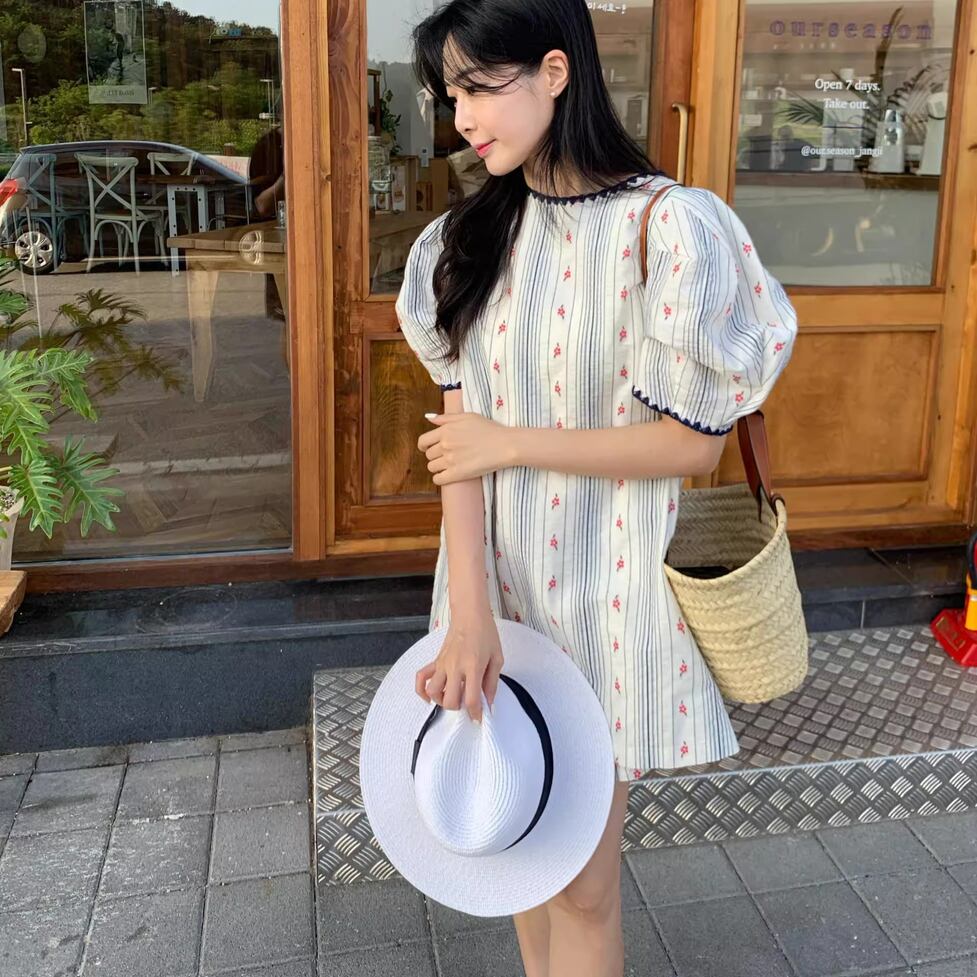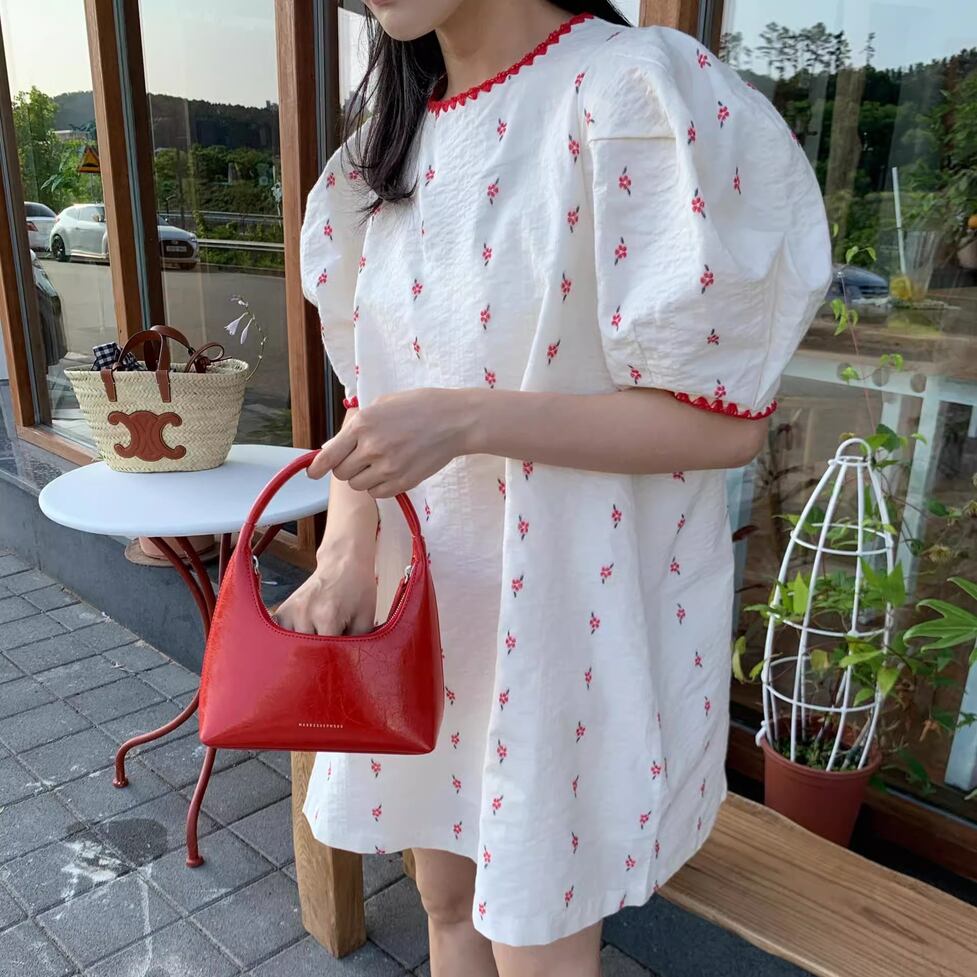 花柄刺繍がかわいいミニワンピース。花柄を散りばめた女の子らしくキュートな雰囲気。ふんわりボリュームシルエットがかわいいバルーンスリーブ。Aラインのガーリーなシルエットに仕上がります。
