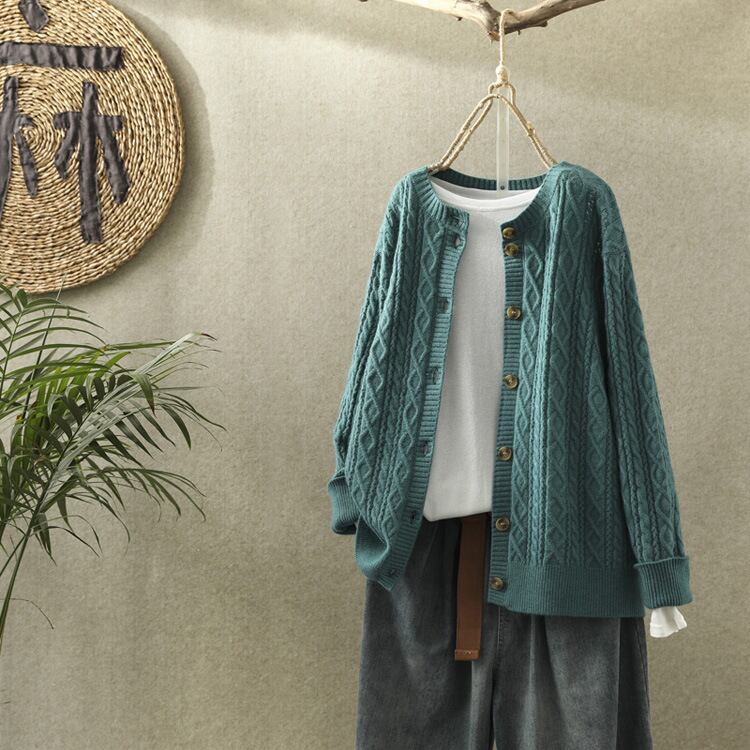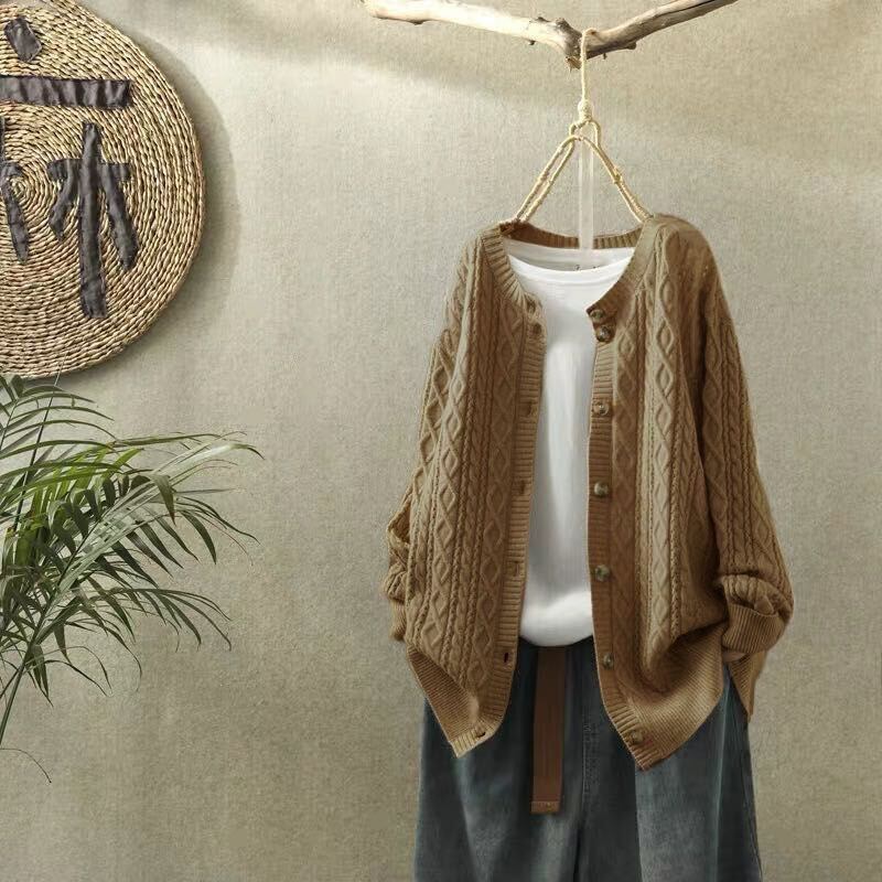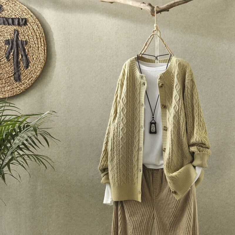 秋冬のコーディネートに欠かせないこのアイテムは、前開きのデザインで羽織りやすく、ドロップショルダーでトレンド感をプラス。袖ありの長袖は、寒い季節の防寒対策にもぴったりです。おしゃれなラウンドネックのデザインが、フェミニンで上品な印象を与え、普段使いから通勤、デートまで幅広く活躍します!