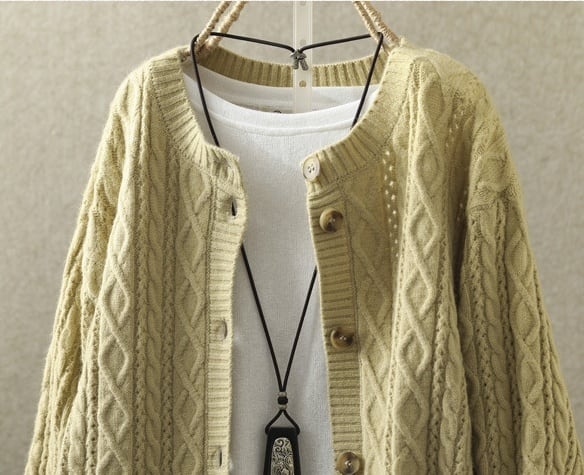 大人可愛い魅力が光るケーブル編みニットカーディガンです!
