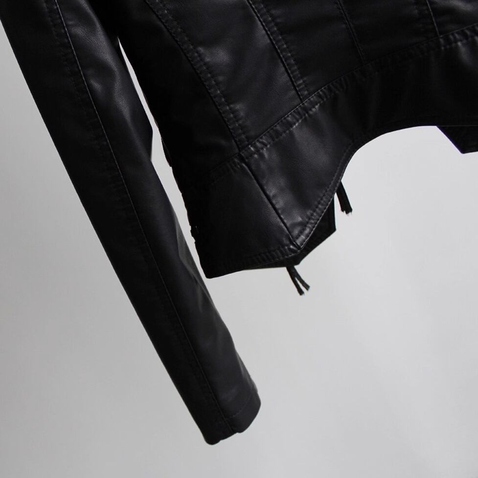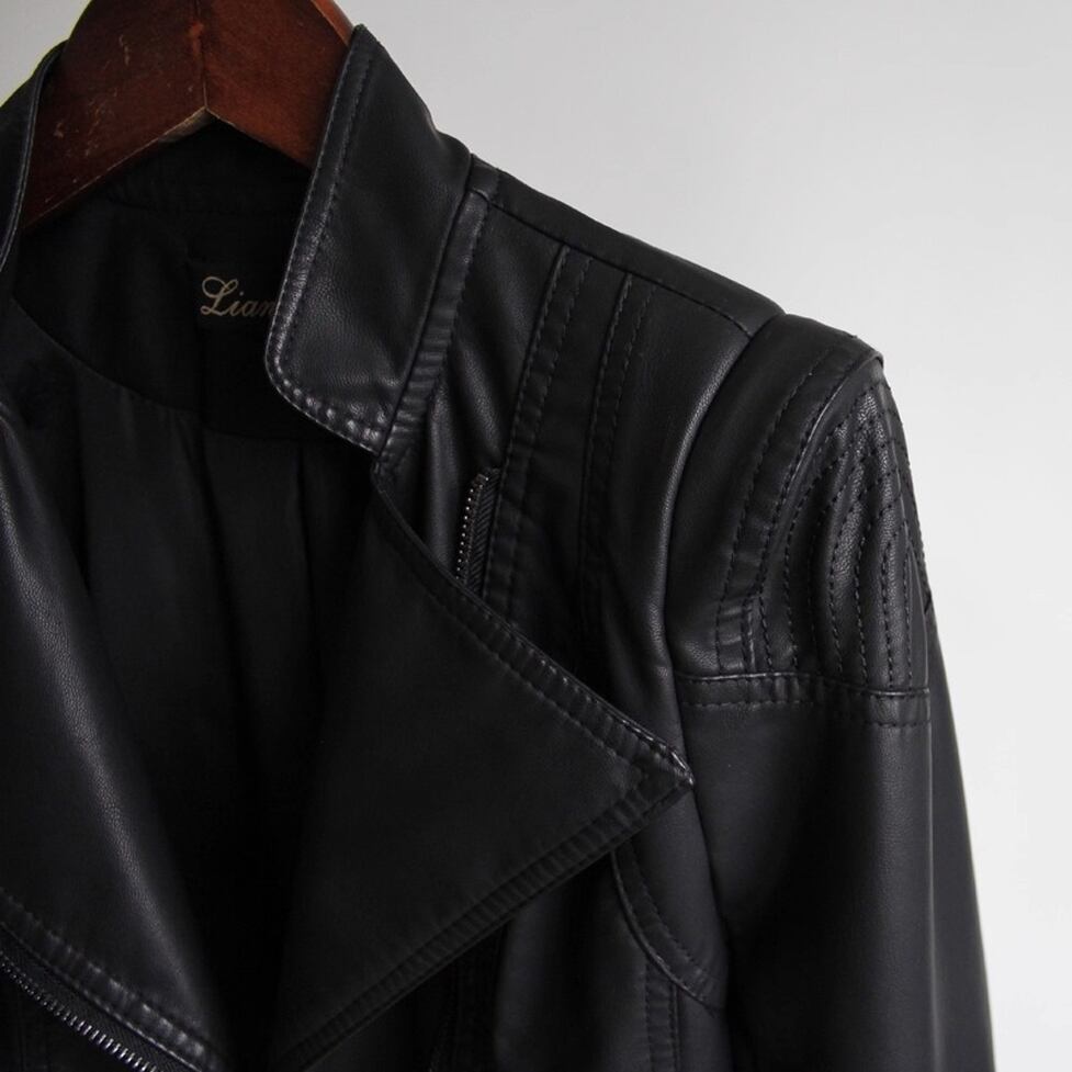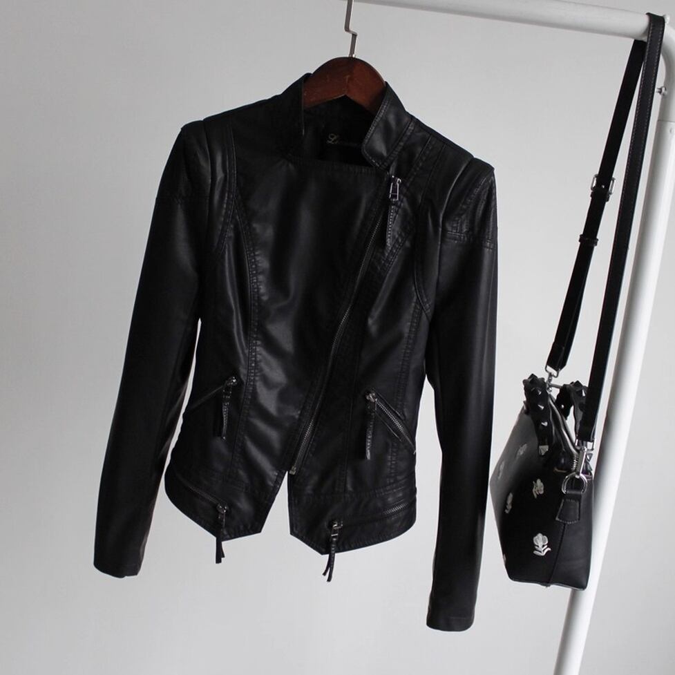 かっこいいシンプル。ワードローブに1枚は持っていたいライダースジャケット。甘辛コーデには必須。マキシワンピに相性バッチリ。ボディラインを女性らしく演出してくれます。