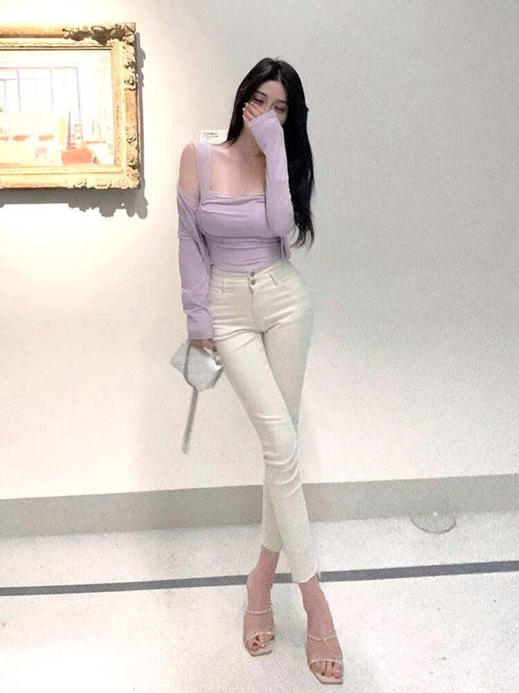 普段使いはもちろん、オフィスやデート、お出かけ、ショッピングなど、様々なシーンで活躍する白のスキニーパンツです。
