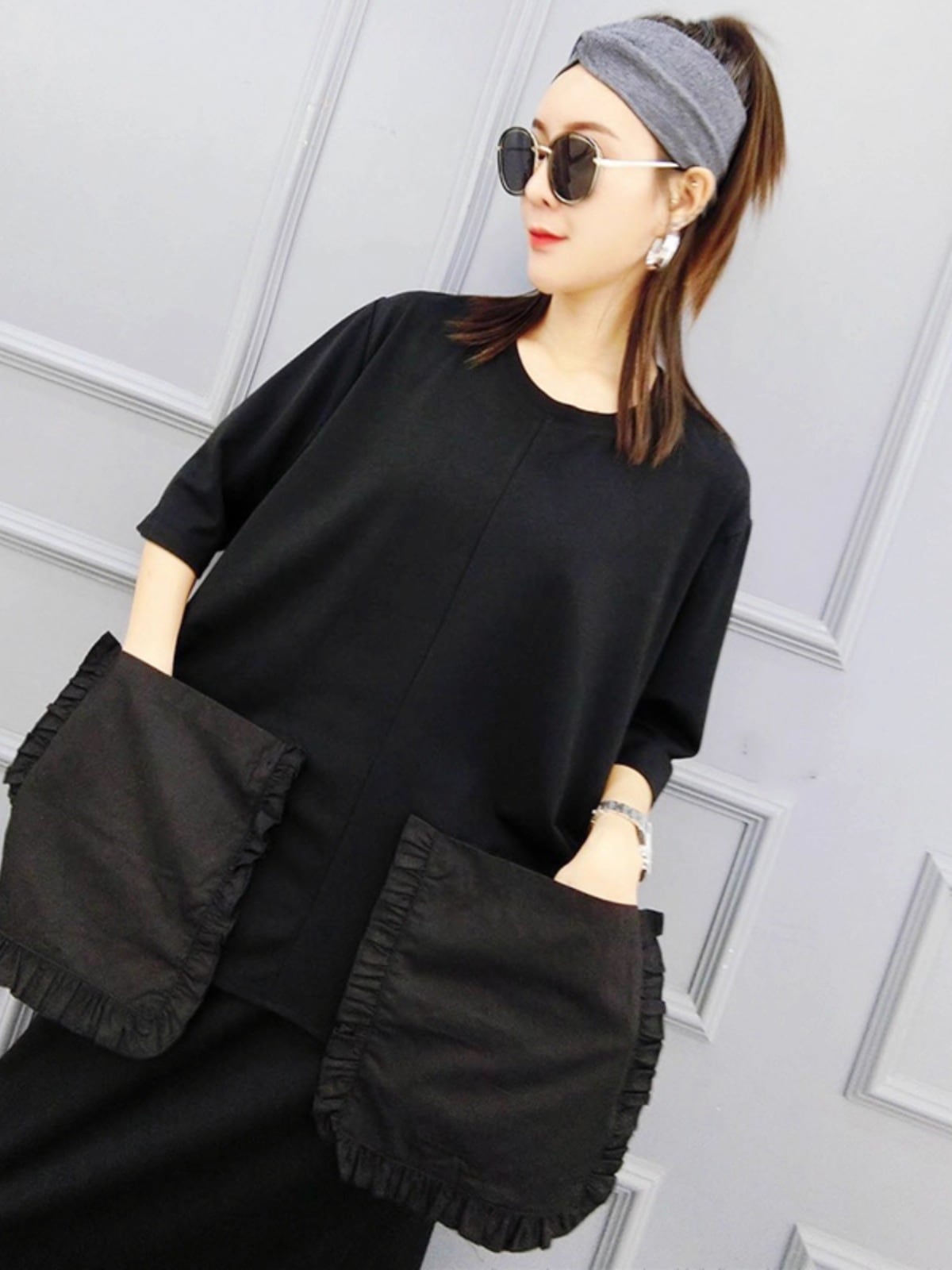 可愛さはもちろん、ラウンドネックとポケット付きで便利さもばっちり!
