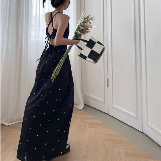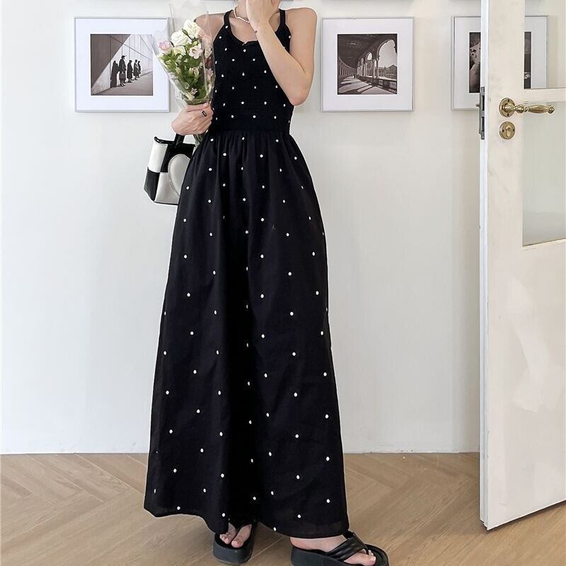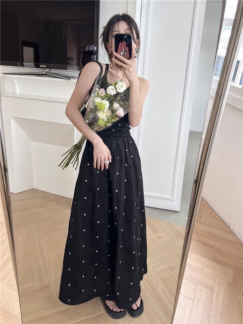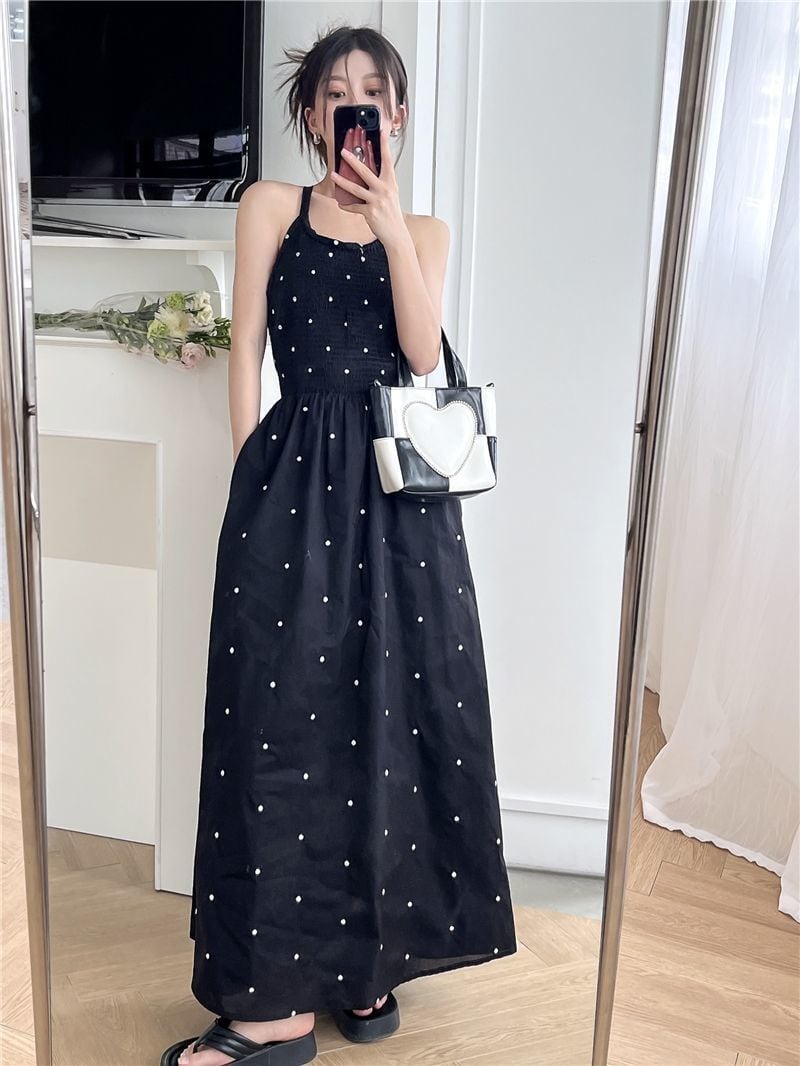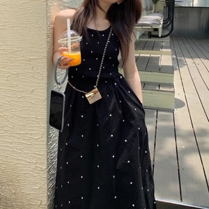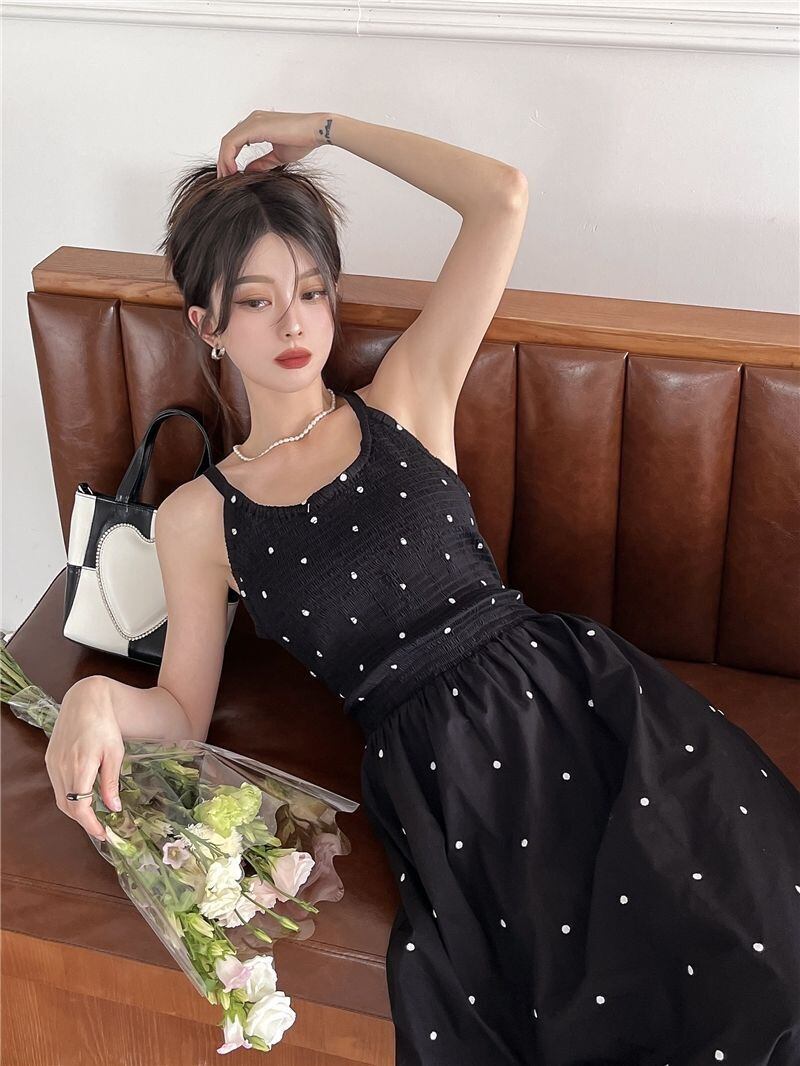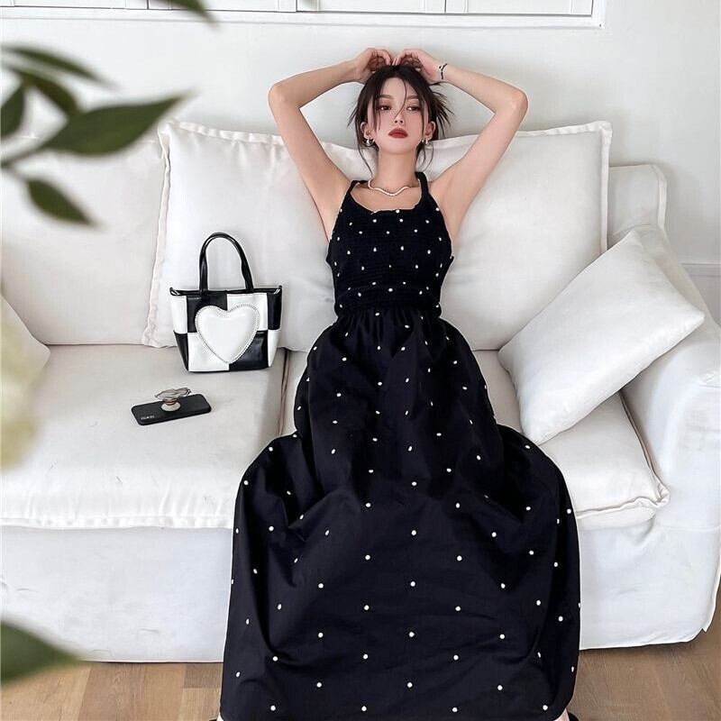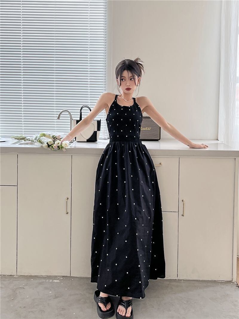 ドット柄が可愛いシンプルなロングワンピース。