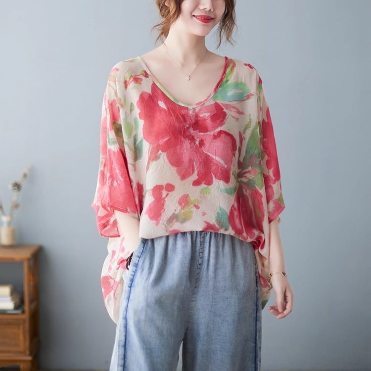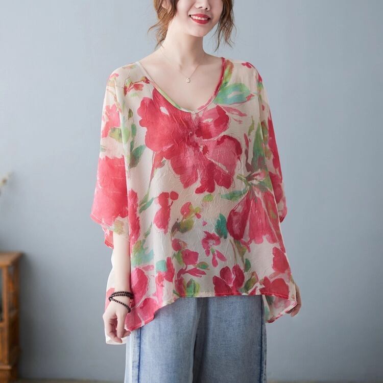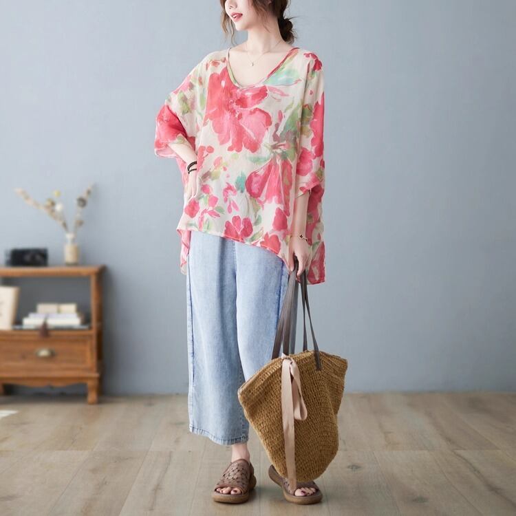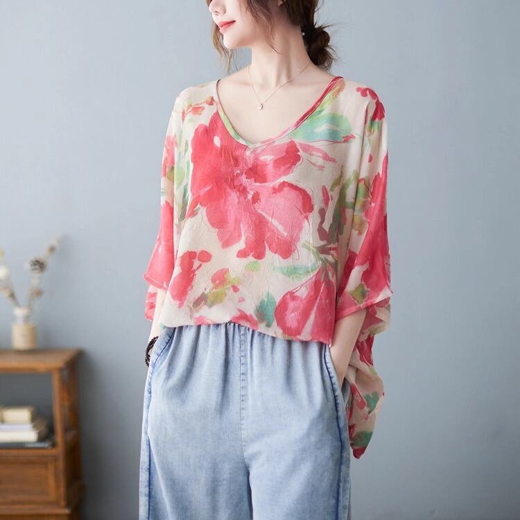 柔らかなシルエットが魅力のドルマンスリーブトップス。