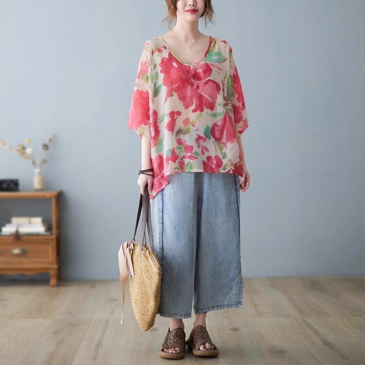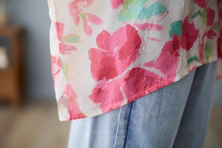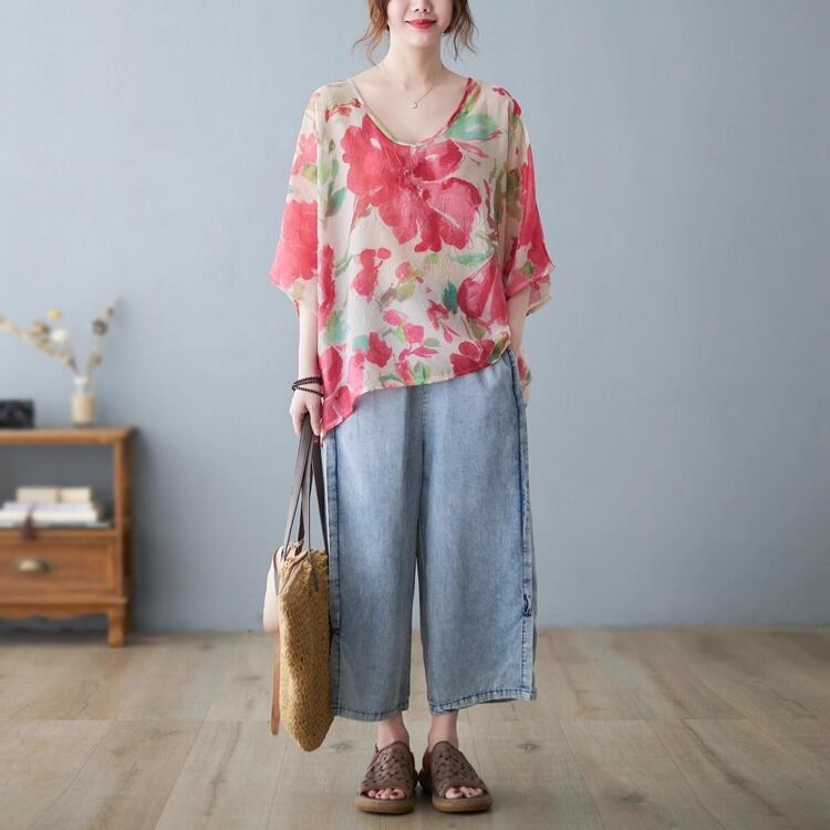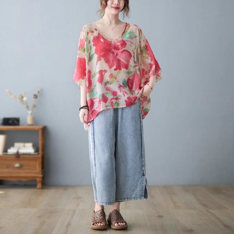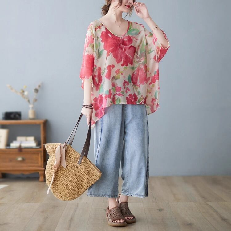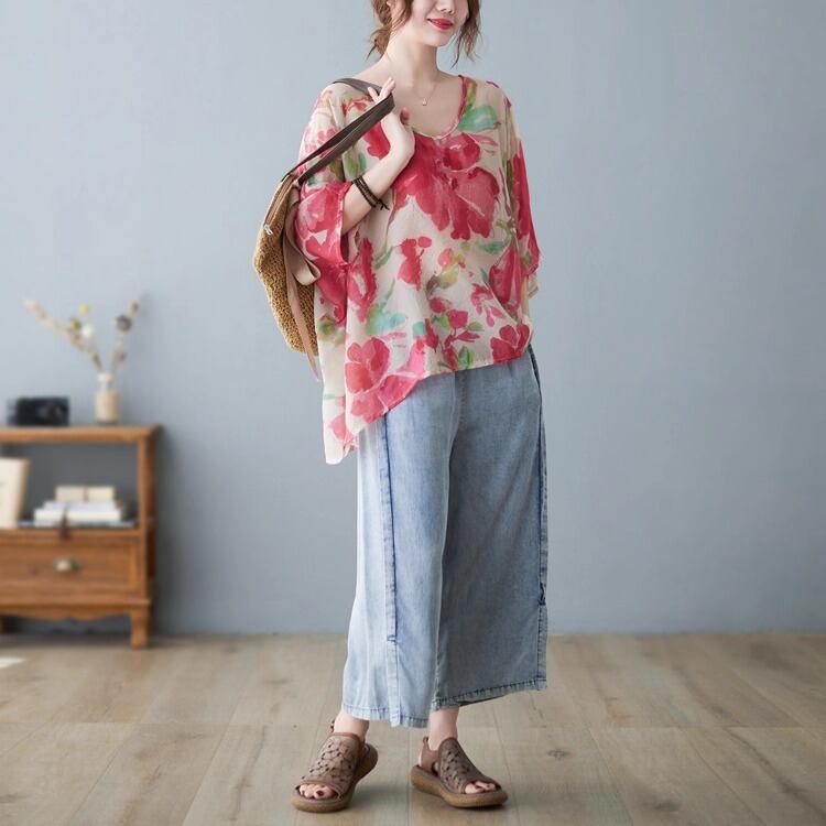 上品な花柄がフェミニンさを引き立て、カジュアルながらも大人可愛い印象に仕上げました。