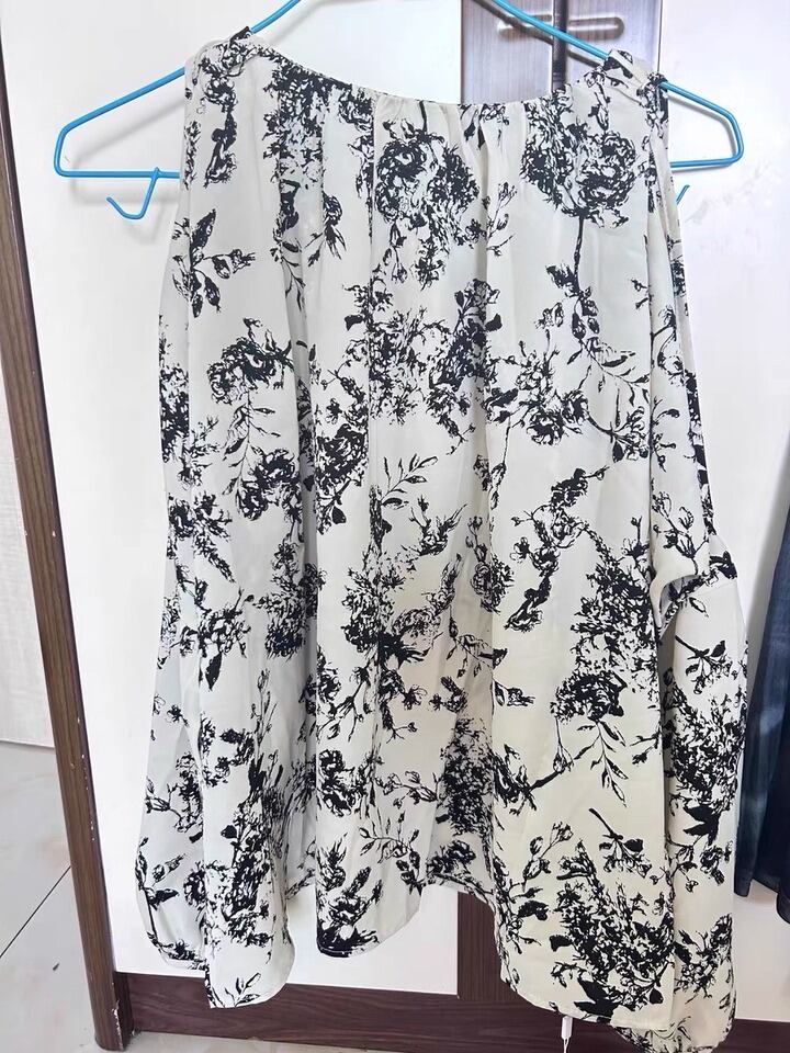 ふんわりとしたランタンスリーブが魅力のオープンショルダートップス。タック入りのクルーネック×Aラインシルエットが女性らしさを引き立て、大人可愛い印象を演出します。さりげないフラワーデザインが華やかさを添え、1枚で主役級の存在感。