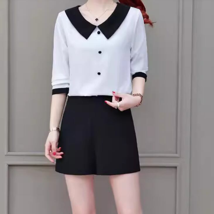 襟付きのシャツスタイルは上品さとカジュアルさがあります