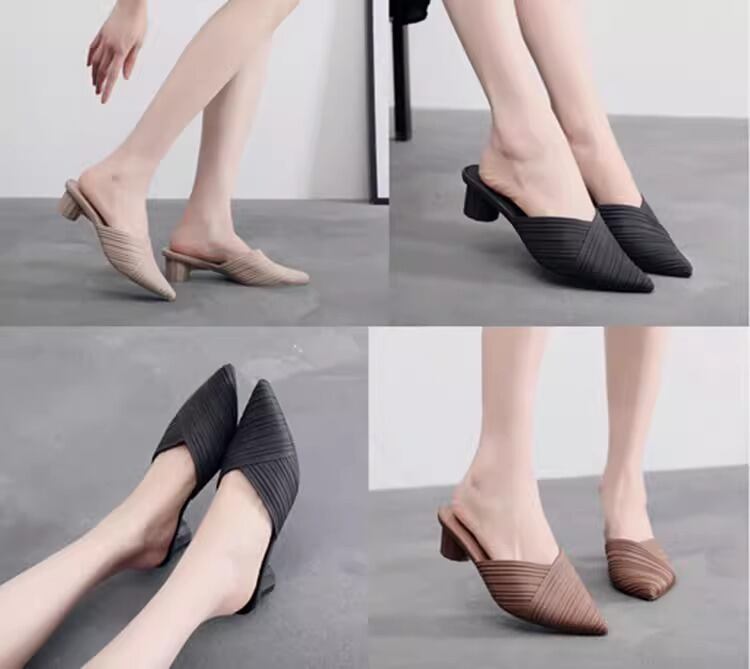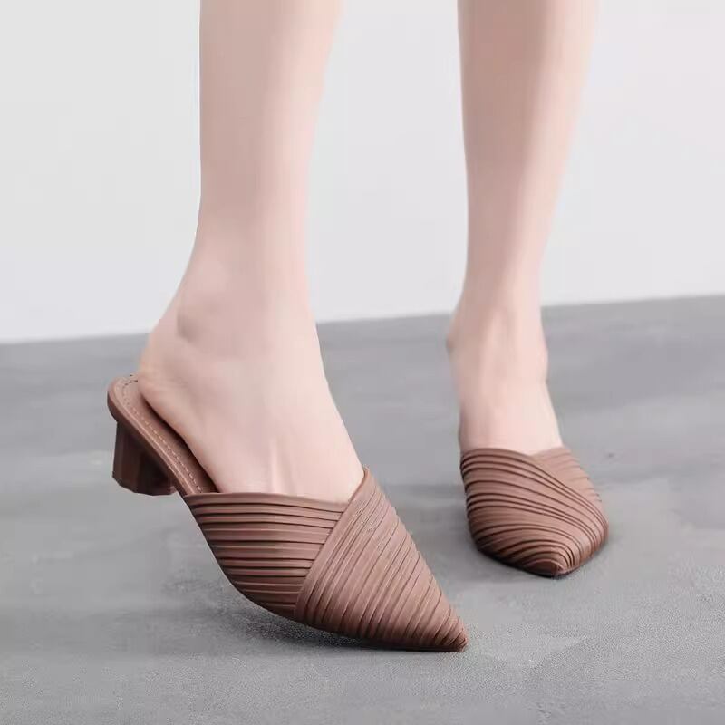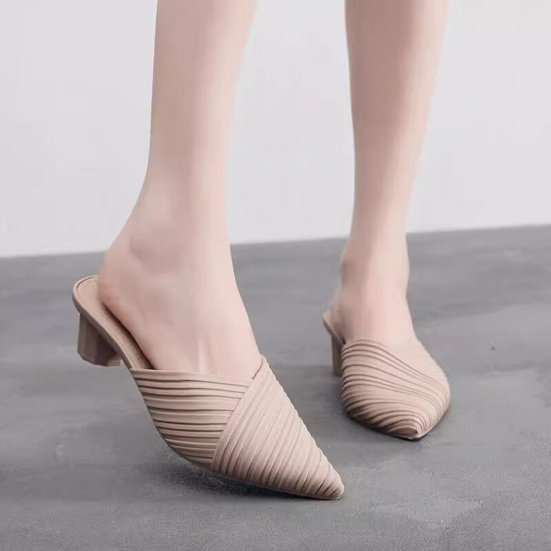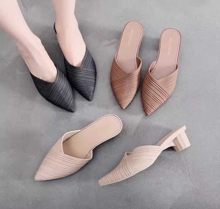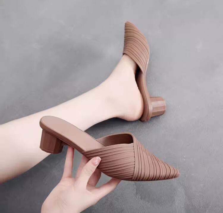 大人可愛い雰囲気のかかとなしのサンダルです。