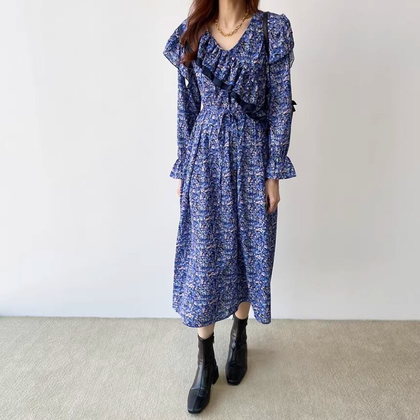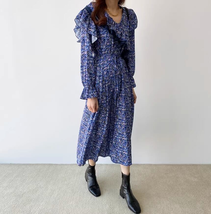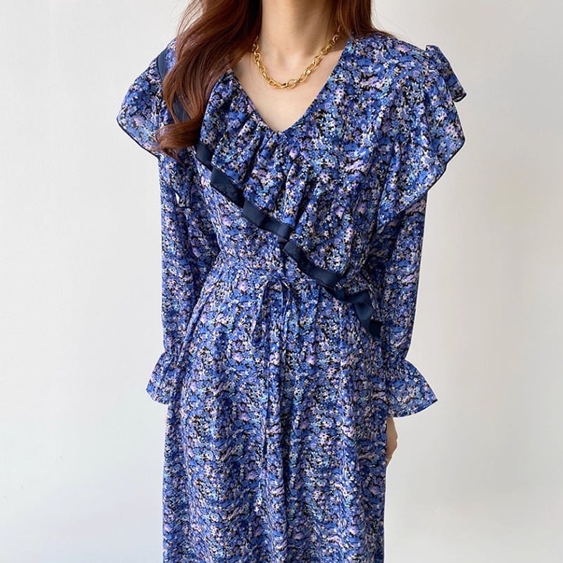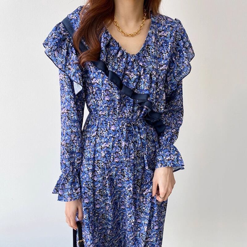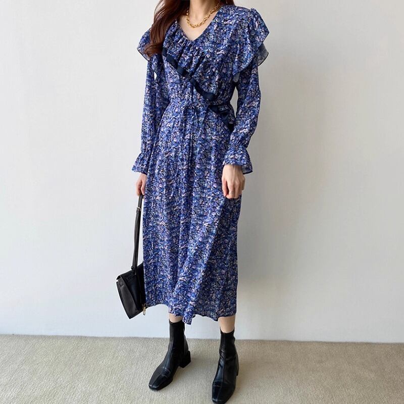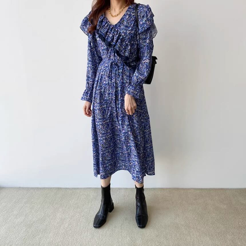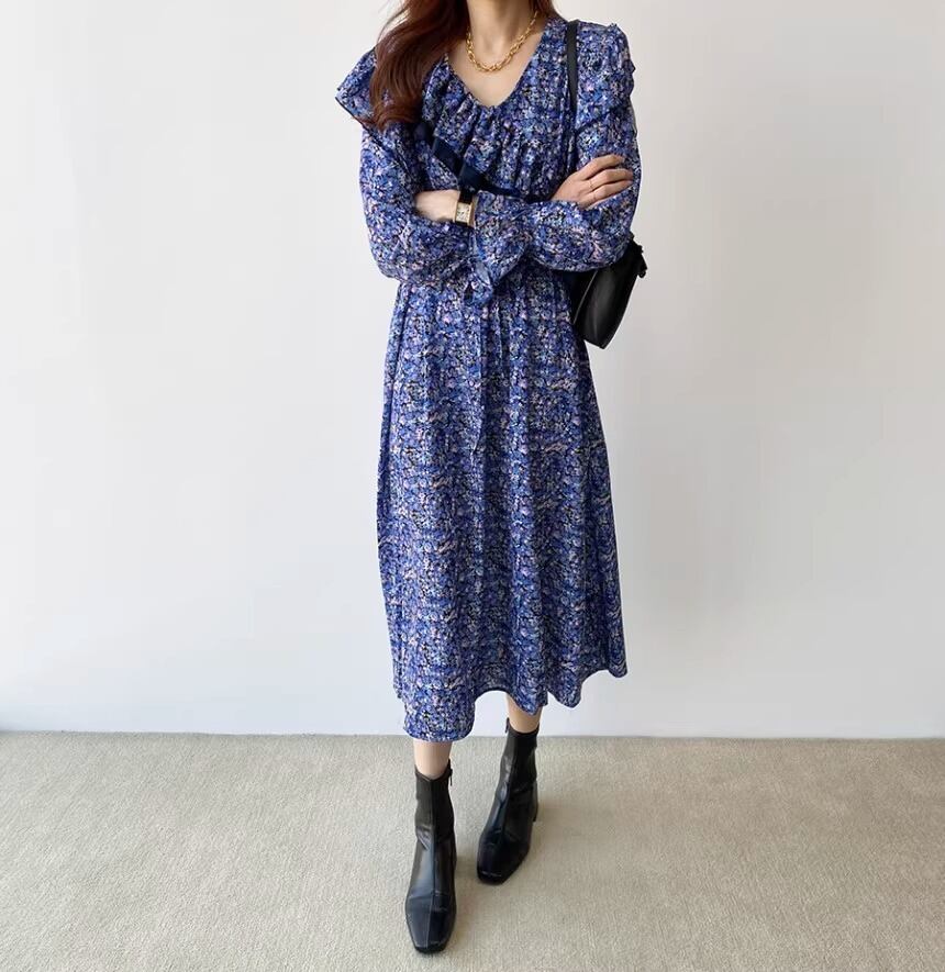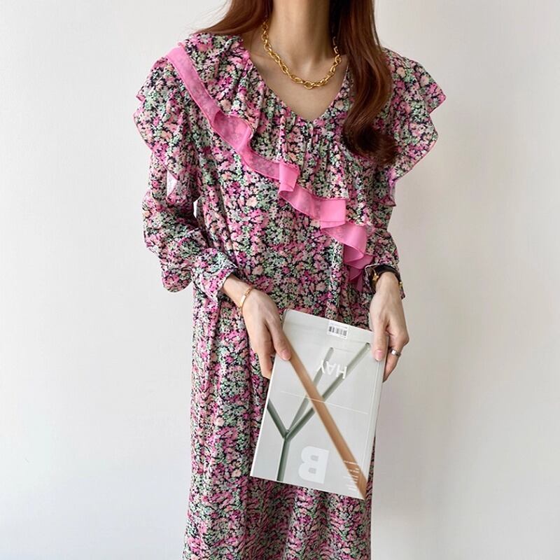 大人可愛い印象の花柄のロングワンピースです。