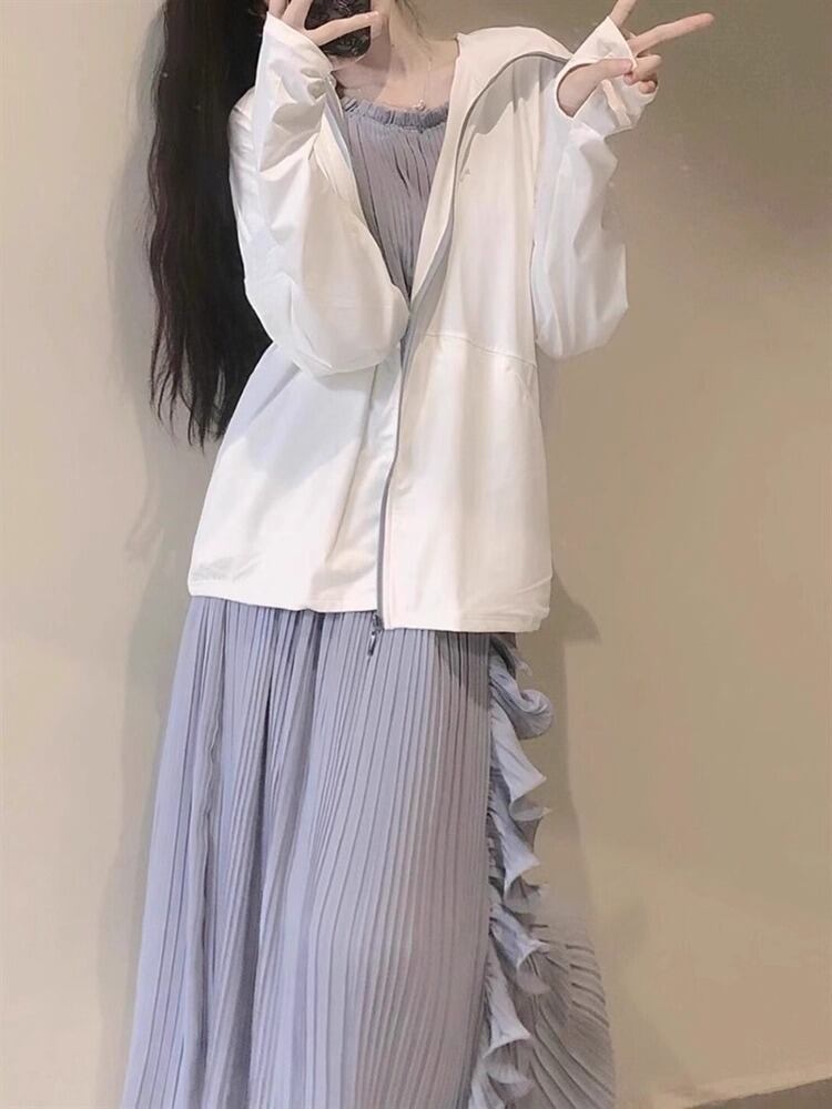 前開きのファスナーとフード付きのデザインで、カジュアルからきれいめまで幅広いシーンに対応可能です。