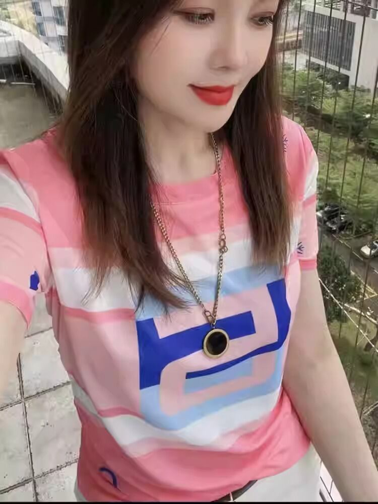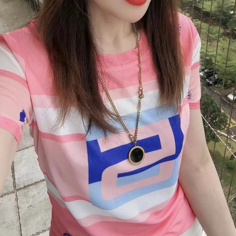 ラウンドネックのシルエットとボーダー+ナンバー柄が魅力のレディースTシャツ。シンプルながらも個性的な柄がほどよくアクセントになり、ガーリーな印象を引き立てます。軽やかで着心地も良く、春夏のデイリーコーデにぴったり。