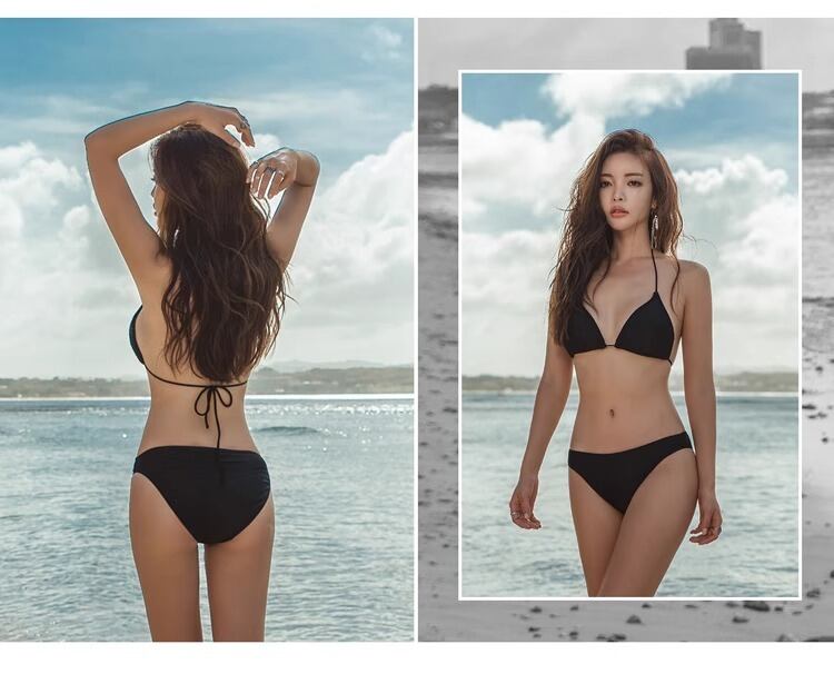シンプルながら洗練された印象を与える、大人可愛い三角ビキニ。無地のデザインに華奢な紐が映え、セクシーさと上品さを両立した一着です。パッド付きで自然なバストラインを演出し、ボディラインを美しく引き立てます。
