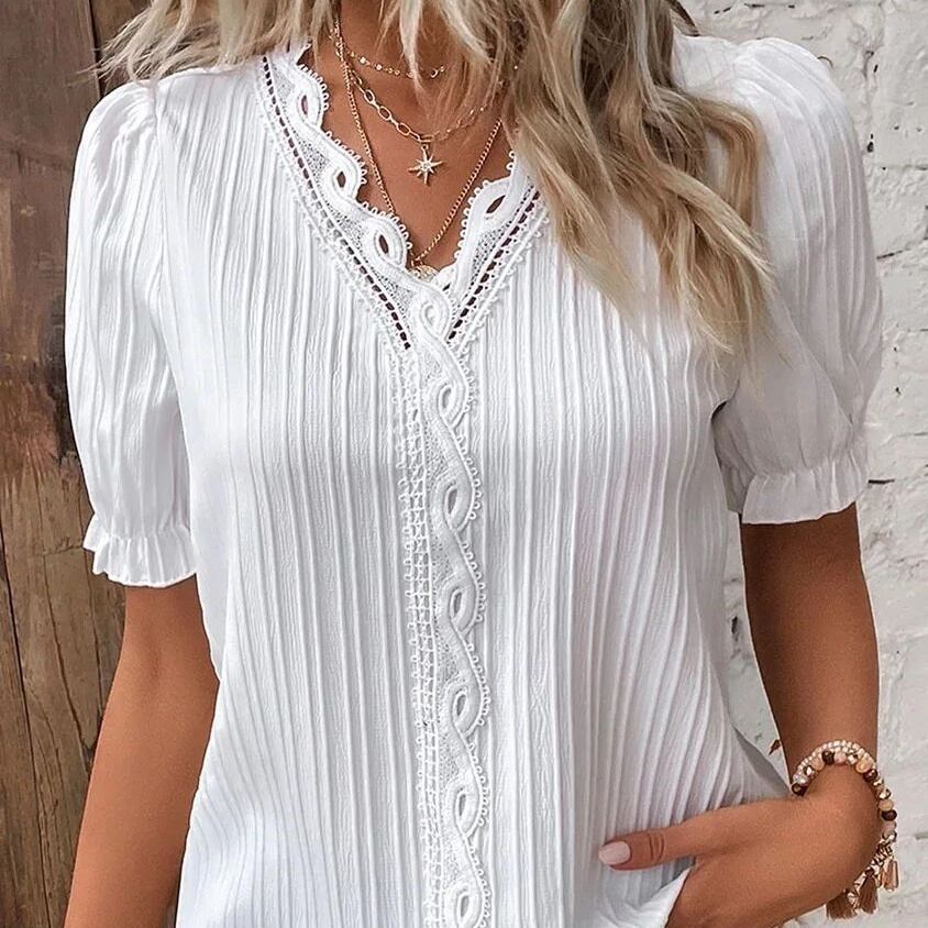 大人可愛いフェミニンなブラウストップスの登場です! 5分袖とVネックのデザインで涼しげな印象を演出。袖フリルが女性らしさを引き立て、こなれ感を与えます。中厚手の素材感は、春、夏、秋にぴったりで、普段使いからデート、お出かけまで幅広いシーンに活躍します。 柔らかなとろみ感があり、上品でラフなスタイルを実現。レース刺繍のアクセントはクラシカルでロマンティック!シンプルながらも個性的なデザインが主役級の存在感を放ちます。体型カバーにも優れており、10代から30代のママ世代まで、誰にでも似合う一枚です。 お好みのカラーを選んで、ぜひあなたのスタイルに取り入れてみてください。どんなシーンでもインスタ映え間違いなしのアイテムです! 色展開 ホワイト ブラック ピンク ライトブルー パープル ライトグリーン イエロー サイズ S M L XL 2XL 3XL 4XL 5XL サイズ(cm) S /着丈 66 /バスト 96 /袖丈 28 M /着丈 67 /バスト 100 /袖丈 28.5 L /着丈 68 /バスト 106 /袖丈 29 XL /着丈 69 /バスト 112 /袖丈 30 2XL /着丈 70 /バスト 118 /袖丈 30.5 3XL /着丈 71 /バスト 124 /袖丈 31.5 4XL /着丈 72 /バスト 130 /袖丈 32 5XL /着丈 73 /バスト 136 /袖丈 32.5 <商品について> 当ショップの商品は、海外で製造されたノーブランド品となっております。 日本製品と比べて、品質基準が異なります。 ほつれ、軽微な汚れやシミ、ファスナーのかたさ、細かな仕様の違いなどが見られる場合がございます。 海外製品の特性上、不良品には該当いたしませんので、あらかじめご了承ください。 また、お使いの端末や閲覧環境により、実物と色味が異なって見える場合がございます。 <発送について> 商品はすべてお取り寄せとなります。ご入金確認後、お届けまでに通常10~24日程度のお時間をいただいております。 メーカーの在庫状況により、通常よりもお時間をいただく場合もございます。 また、欠品や商品不良などにより、商品がご用意できず、やむを得ずご注文をキャンセルさせていただく場合がございます。その際は、速やかにご返金させていただきます。 <返品・交換について> ご注文確定後のキャンセル、サイズ・カラー等の変更はお受けしておりません。 内容をご確認のうえ、お間違いのないようご注意ください。 返品・交換は商品に不良がある場合を除き、お受けしておりません。 欠品により交換をお受けできない場合は、代替品との交換または、返金とさせていただく場合もございます。 以上、何卒ご理解のほど、よろしくお願い申し上げます。 最後までご覧いただき、誠にありがとうございました。 N-NBL-A03682