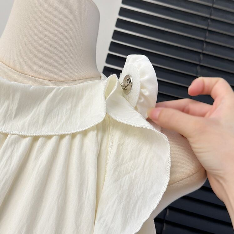 こちらのドレスワンピースは、結婚式やパーティー、二次会、披露宴、発表会、ステージ、舞台、謝恩会など多彩なシーンで活躍する一着です。ノースリーブのアメリカンスリーブデザインは、華やかさを演出しつつも、程よい抜け感で大人可愛い印象を与えます。丸襟付きで上品さが加わり、どなたでもスタイリッシュに着こなせるアイテムです。