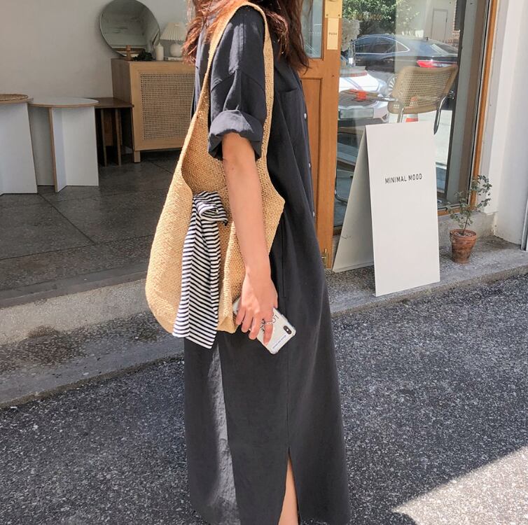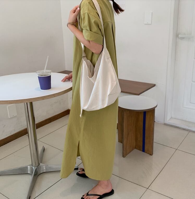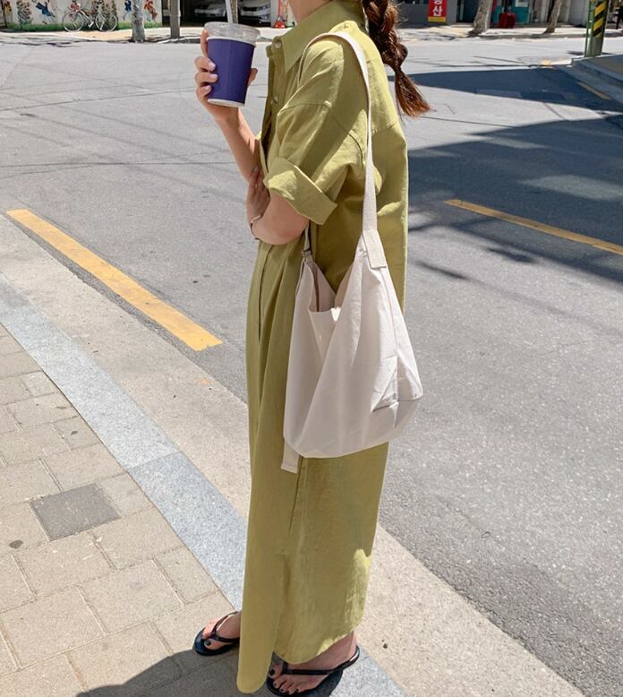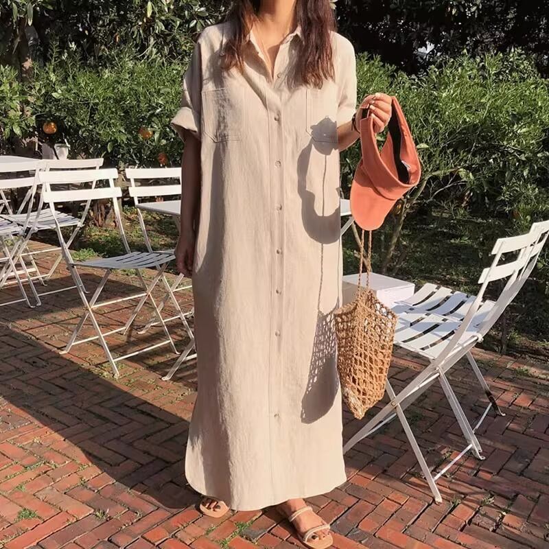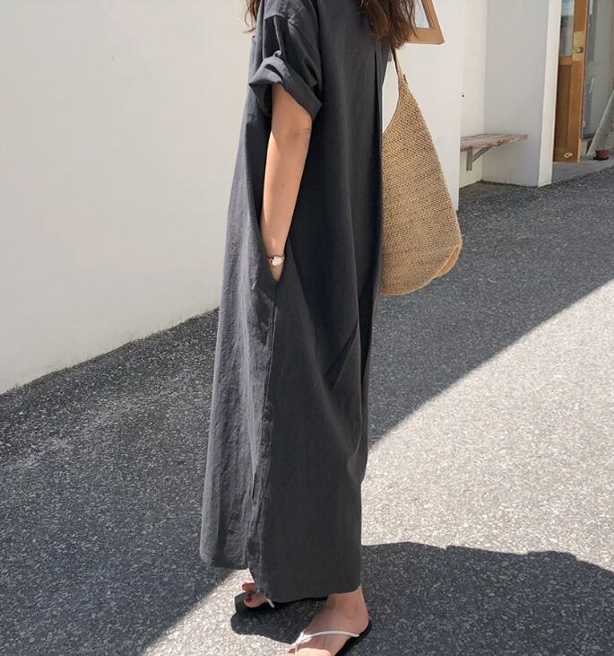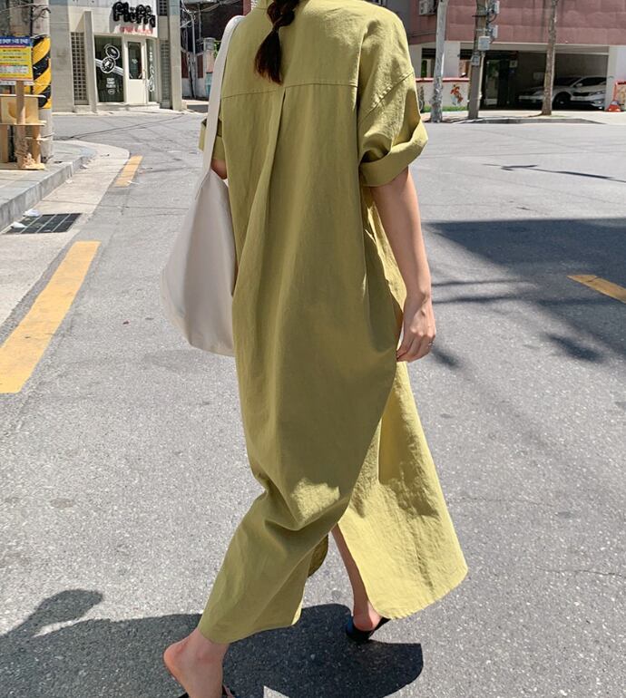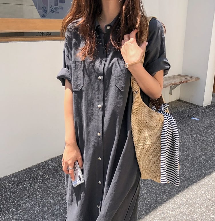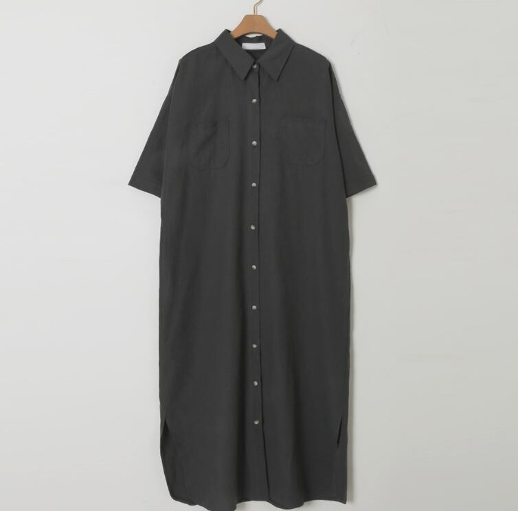 春夏秋冬とオールシーズンでお楽しみいただけるマキシ丈のシャツワンピースです。